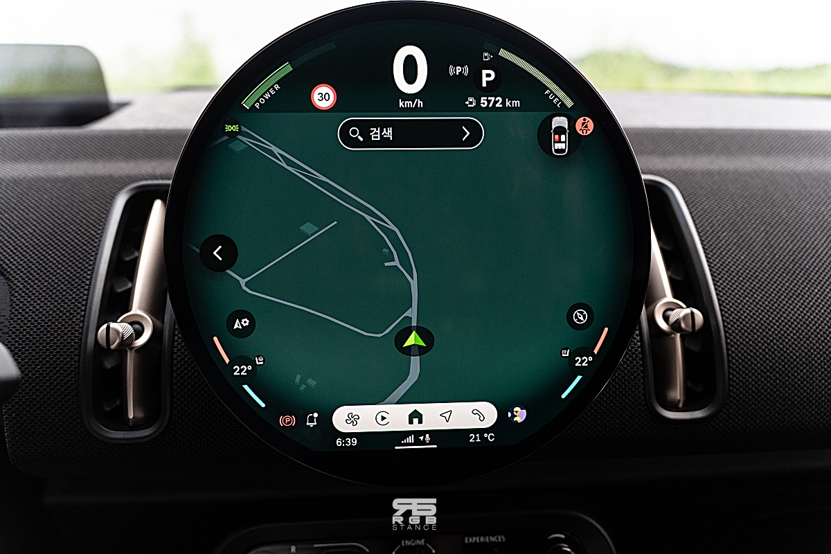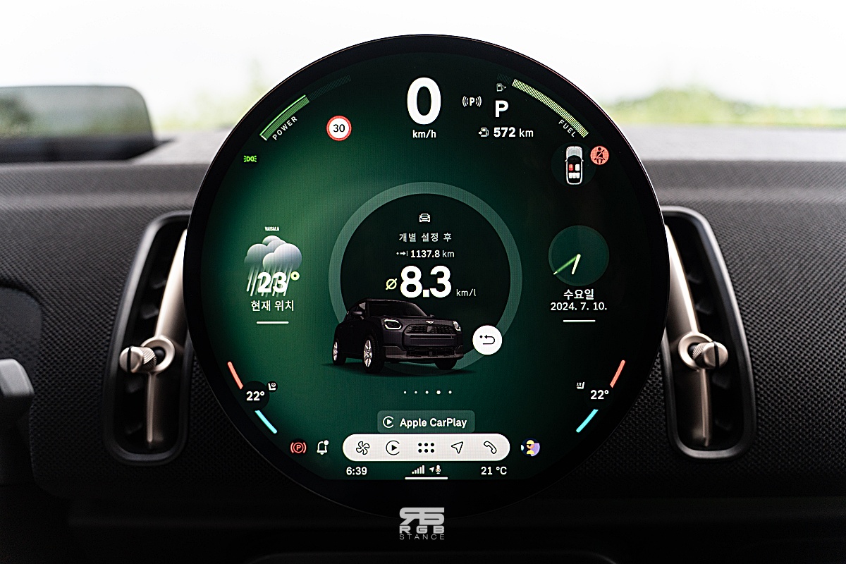 그리고, 원형 OLED 는 슬림하면서도 미니만의 아이덴티티를 잘 유지하고 있으며, 선명하면서도 터치 반응이 빠르며, 원하는 이미지를 띄워놓을 수 있어서 개인화 세팅을 할 수 있다는 점 역시 마음에 드는데, 8가지 미니 익스피리언스 모드를 통해 디자인과 느낌을 완전히 바꿀 수 있다. 이 외에도 T-map 이 기본 제공되며, 무선 애플 카플레이, 안드로이드 오토 등을 활용해 사용하기 더욱 쉽고, 미니 커넥티드(MINI Connected, 유료) 를 사용하면 정차시 게임과 비디오 스트리밍 등의 확장된 기능을 사용할 수 있다.