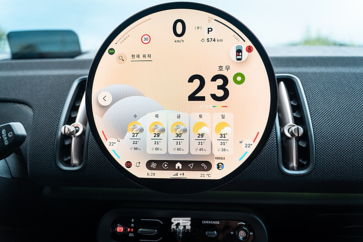 거친 노면을 지나갈 때의 편안함과 고속주행시의 묵직한 안정감. 여기에 비가 오는 날씨에 진흙탕길에서도 신뢰감 있는 All 4 사륜구동 시스템까지 더해 주행안정성을 더해주는데, 경쾌한 가속감과 덩치를 생각하면 상당히 민첩한 핸들링 감각까지 미니가 말하는 운전의 즐거움까지 놓치지 않았다.