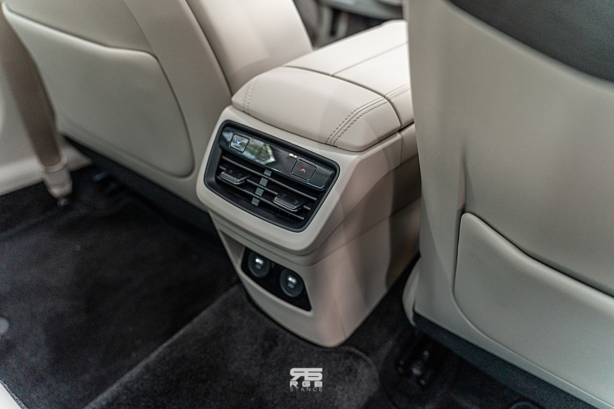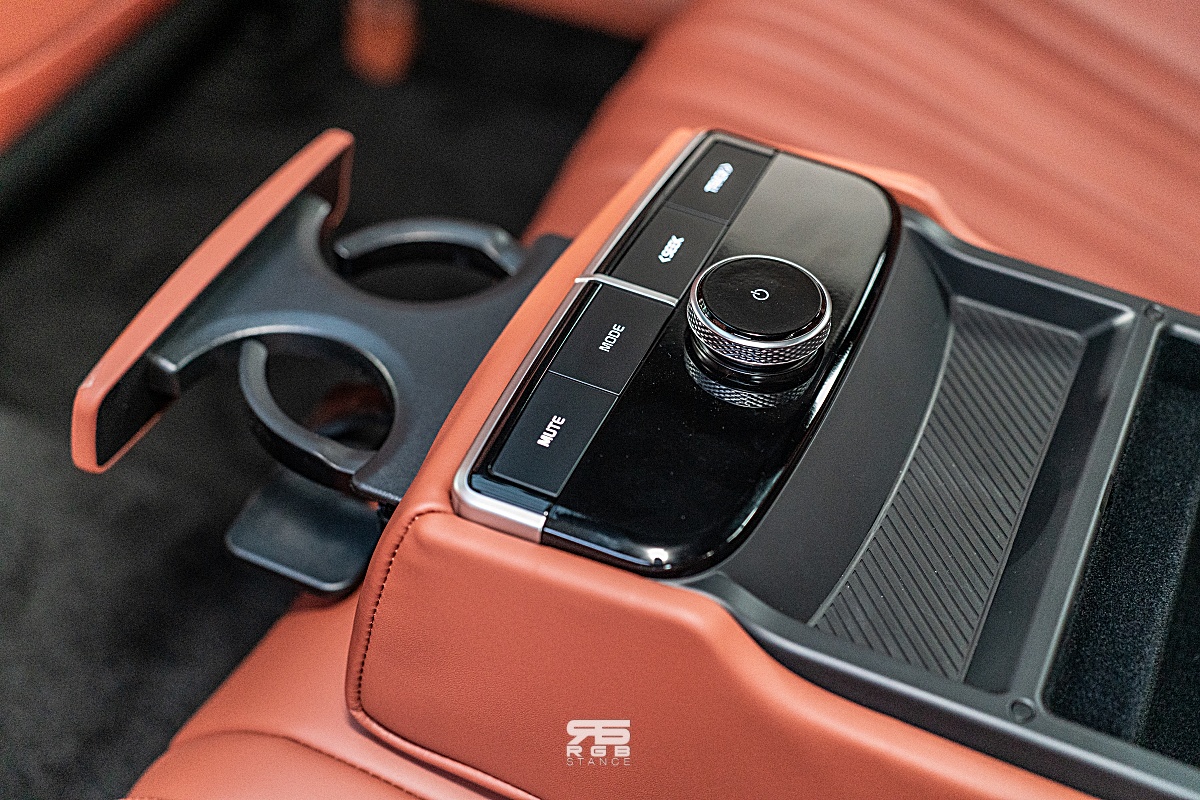 하지만, 실내는 고급스러운 소재와 함께 수평적 공간감을 통해 우아한 조형미를 더했다. 크래시 패드 중앙에서 시작해서 1열 양쪽 도어까지 승객을 감싸듯 이어지는 ‘실버 라이닝 다크 우드그레인 내장재’ 는 기하학적 패턴의 스피커 그릴과 함께 고급감을 더하고 있다.