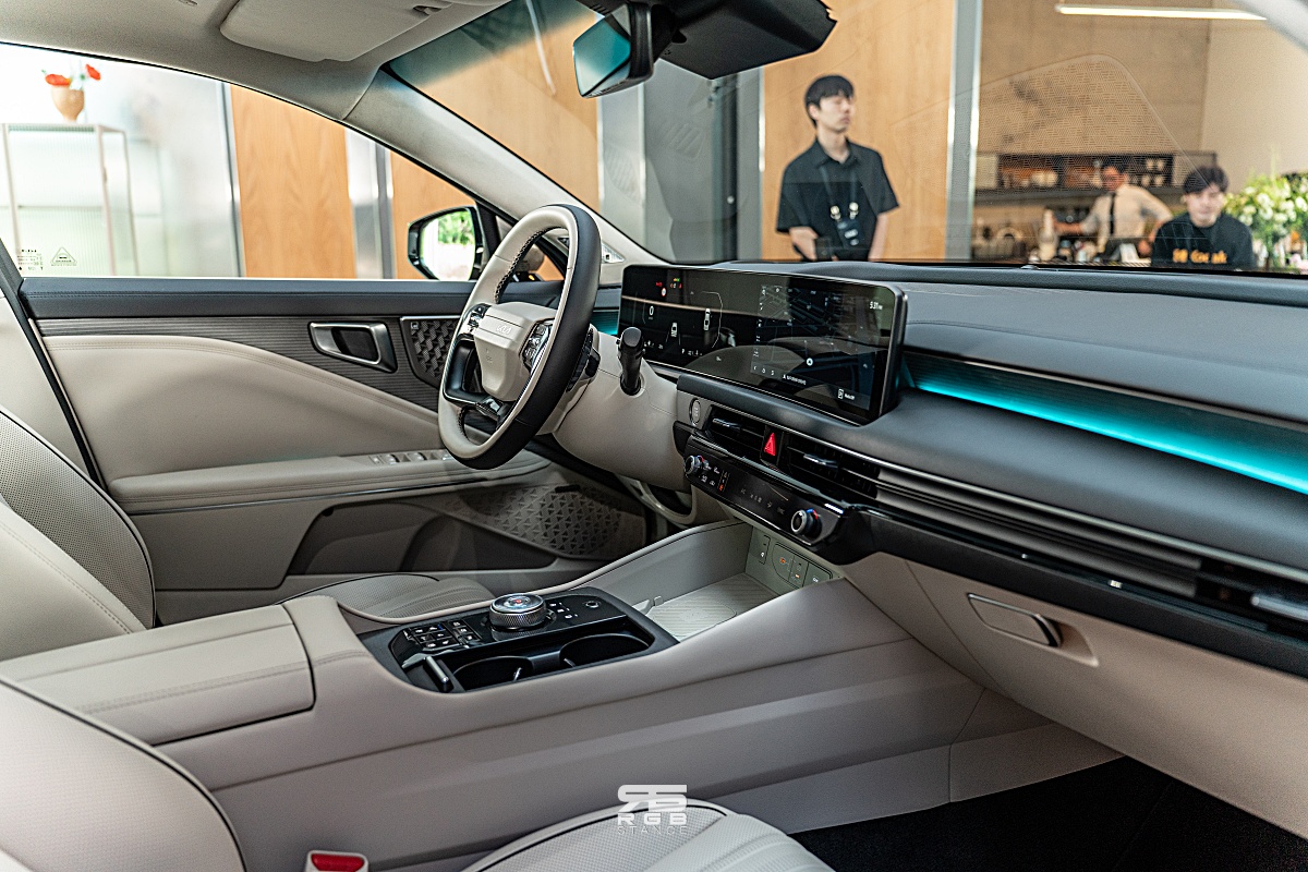 그리고, 파노라믹 커브드 디스플레이 양쪽에 적용되어 실내 공간을 더 넓게 보이게 해주는 다이나믹 앰비언트 라이트는 과속 안내나 어린이 보호구역 진입, 음성인식, 웰컴/굿바이 등 다양한 상황에서 교감하듯 점등된다. 콘솔에는 스마트폰 무선 충전 시스템(듀얼) 과 지문 인증 시스템 및 현대차그룹 최초로 이중 사출 인쇄 방식의 컵홀더 커버와 열선 및 자외선(UV-C) 살균 기능이 포함된 양문형 콘솔암레스트를 신규 적용해 편의성을 높였다. 이 외에도 에르고 모션 시트가 동승적에도 적용되었다.