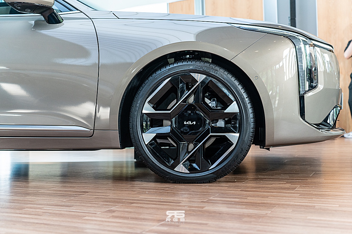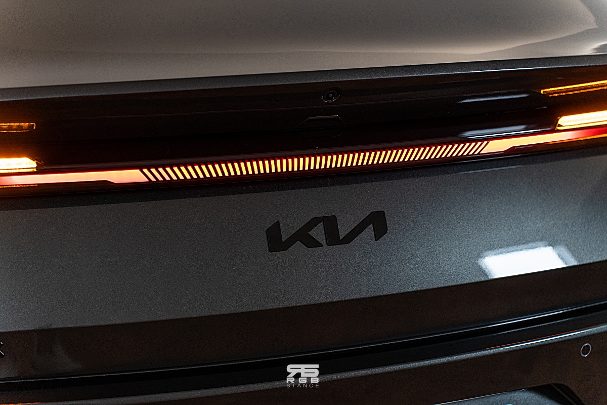 전면부에는 기아의 새로운 패밀리룩인 ‘스타맵 시그니처 라이팅’ 을 반영한 주간 주행등과 수직형 조명이 미래지향적 분위기를 연출하며, 센터 포지셔닝 램프가 시각적으로 연결되어 차폭을 강조했고, 준대형 세단의 웅장함이 느껴지도록 입체적인 형상의 범퍼에는 하단부에 가로로 긴 크롬 장식을 적용해 와이드함을 더했다.