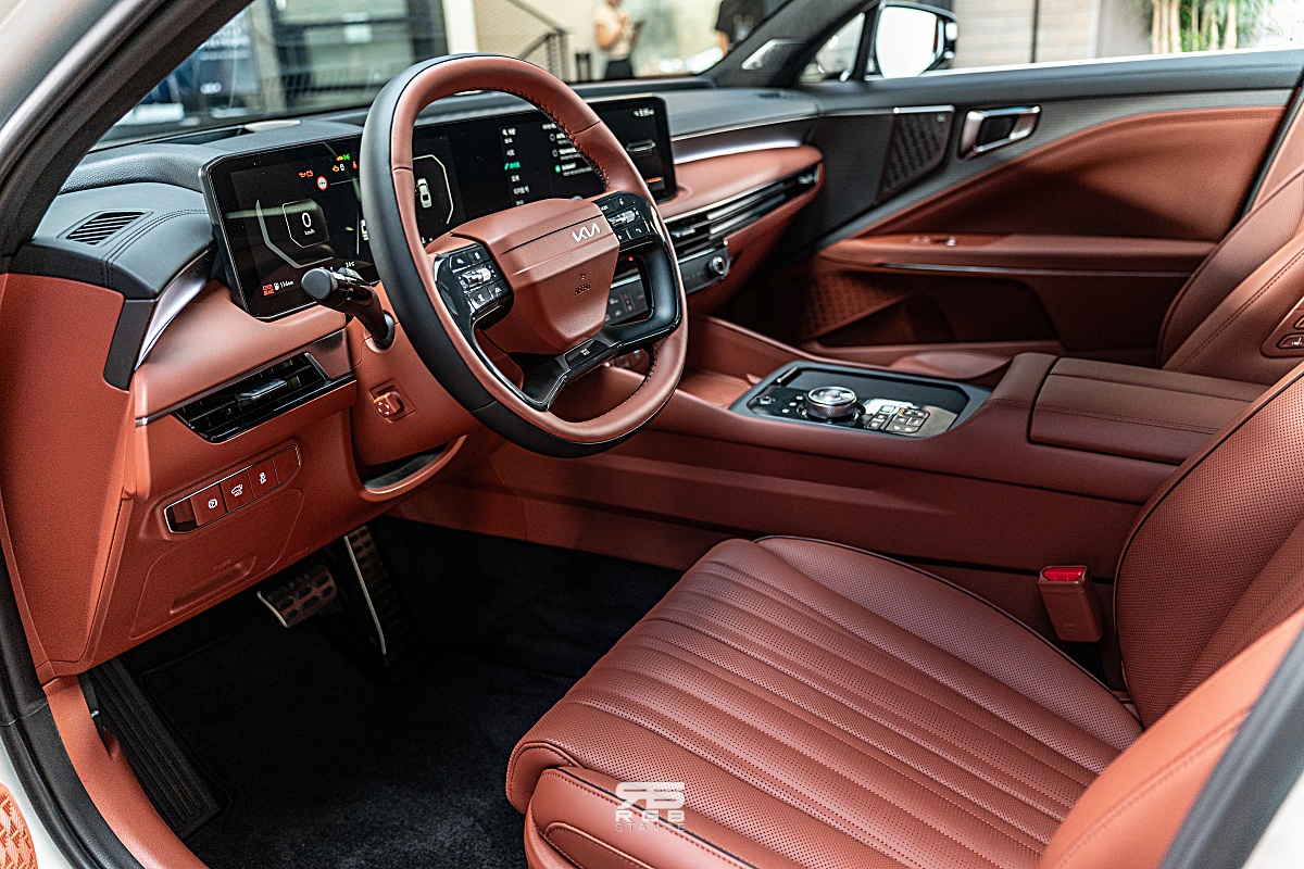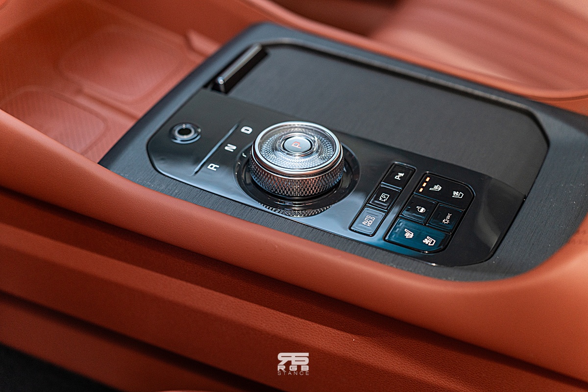 하지만, 실내는 고급스러운 소재와 함께 수평적 공간감을 통해 우아한 조형미를 더했다. 크래시 패드 중앙에서 시작해서 1열 양쪽 도어까지 승객을 감싸듯 이어지는 ‘실버 라이닝 다크 우드그레인 내장재’ 는 기하학적 패턴의 스피커 그릴과 함께 고급감을 더하고 있다.