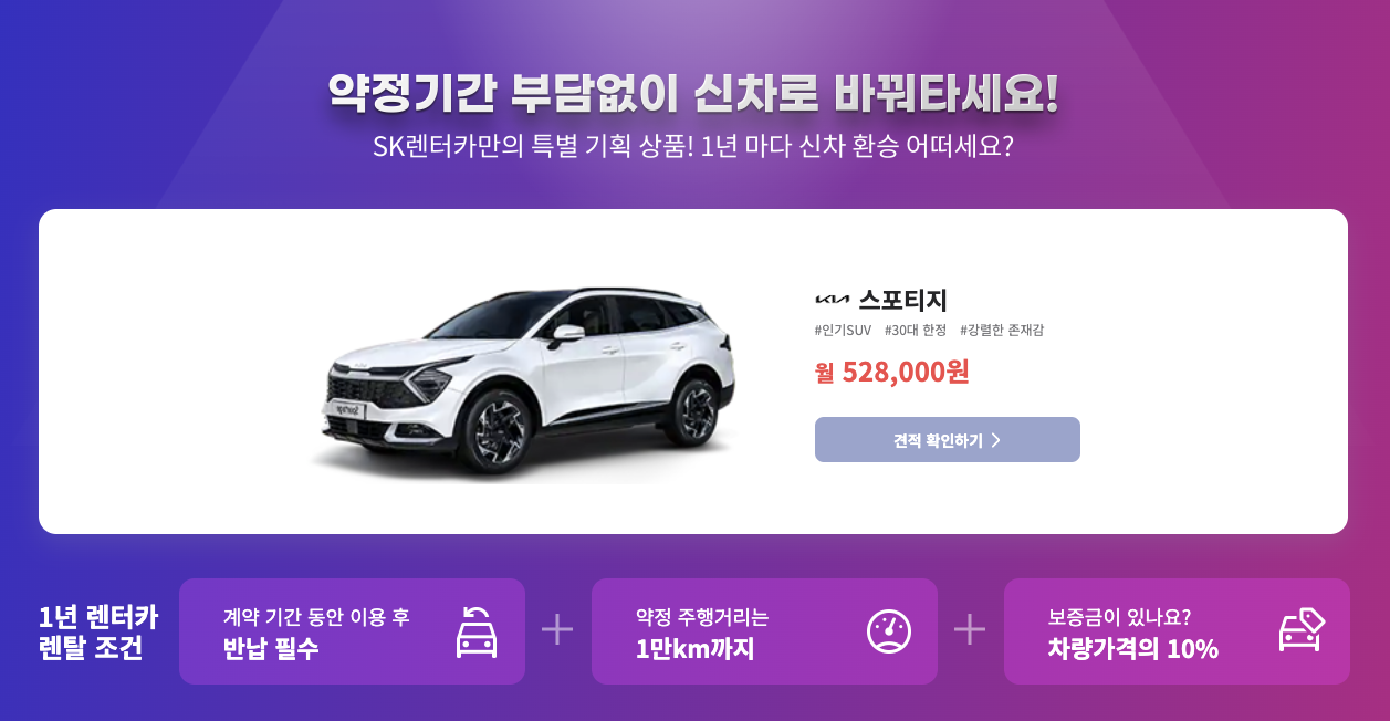 딱 1년만! 하루 17,600원으로 스포티지를 내 차처럼 – SK렌터카 신차장기렌트