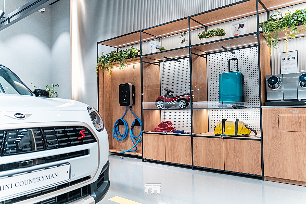 1층에는 ‘핸드오버존’ 을 통해 출고 고객을 위한 특별한 경험이 가능하게 구성해 놓았고, 3층에는 M 존을 조성해 두었다. 그리고 1층과 지하에는 JCW 존을 포함해 총 7대의 최신 미니(MINI) 차량을 전시해 놓아 다양하게 차량을 구경하고 구매 상담까지 받을 수 있다.