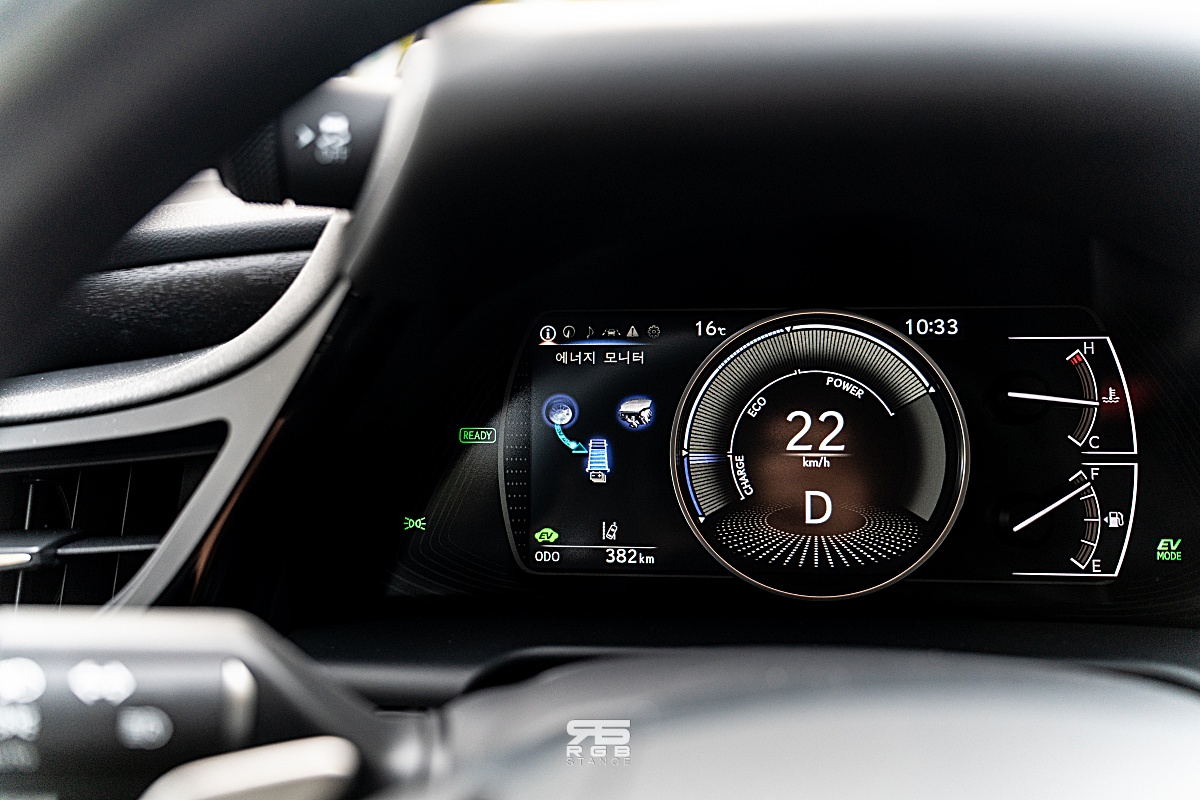그리고, ES300h 는 EV 모드를 통해 전기모터로만 주행이 가능한데, 40km/h 이내에서 사용 가능하며, 저속주행 및 정체구간에서 더욱 높은 효율을 보여준다.
