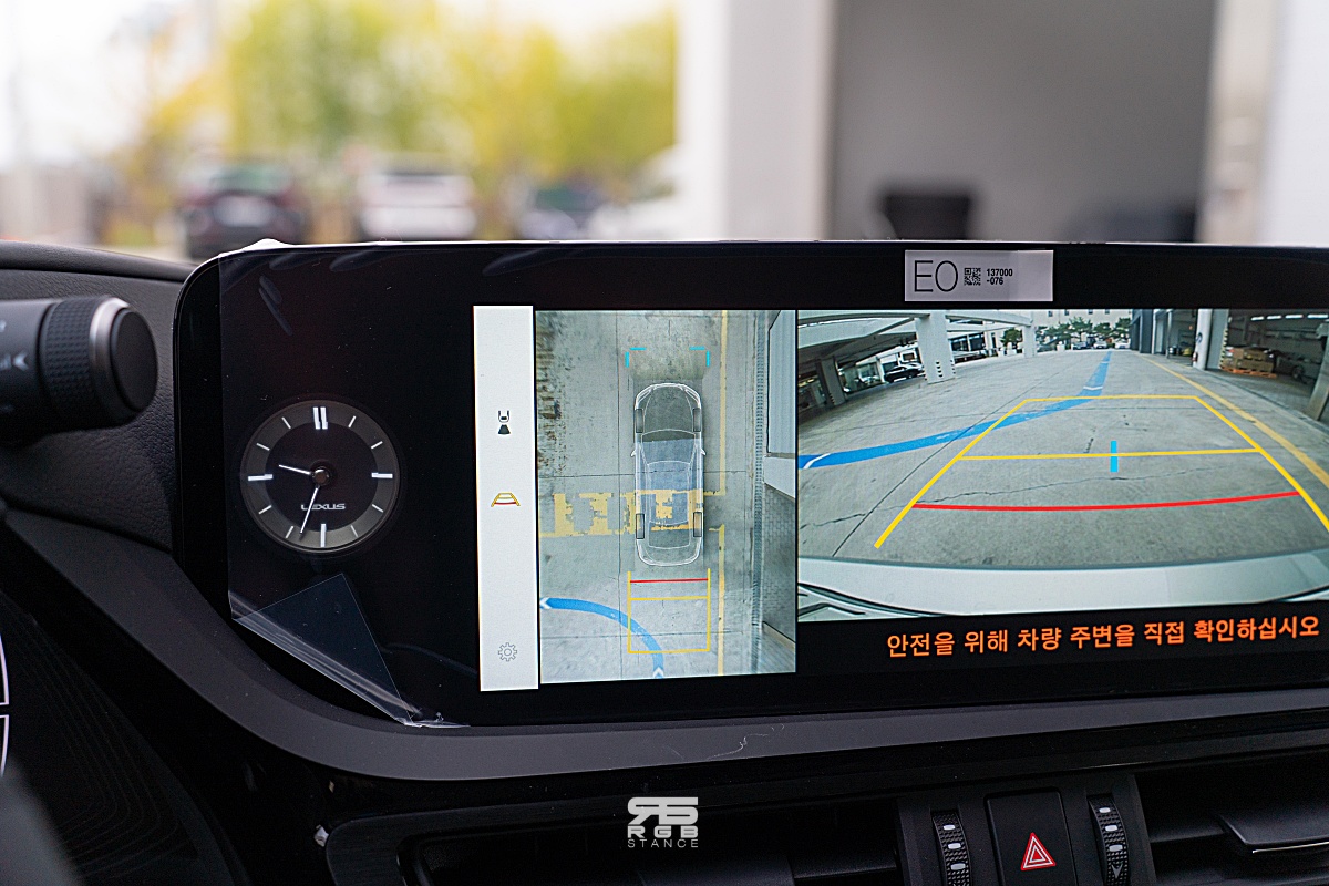 실내는 블랙 우드그레인을 통해 고급스러우며, 렉서스만의 독특한 비대칭 구조를 와이드하게 배치하면서도 사용자 중심의 ‘시트 인 컨트롤’ 콘셉트를 통해 운전이 편안한 구조로 보이고 있다. 12.3인치의 터치식 대형 디스플레이는 내비게이션 및 스트리밍 뮤직, 유플러스 모바일 TV 등 다양한 인포테인먼트를 즐길 수 있고, 소모품 정보 및 교체주기 같은 차량관리에 대한 정보도 확인할 수 있다.