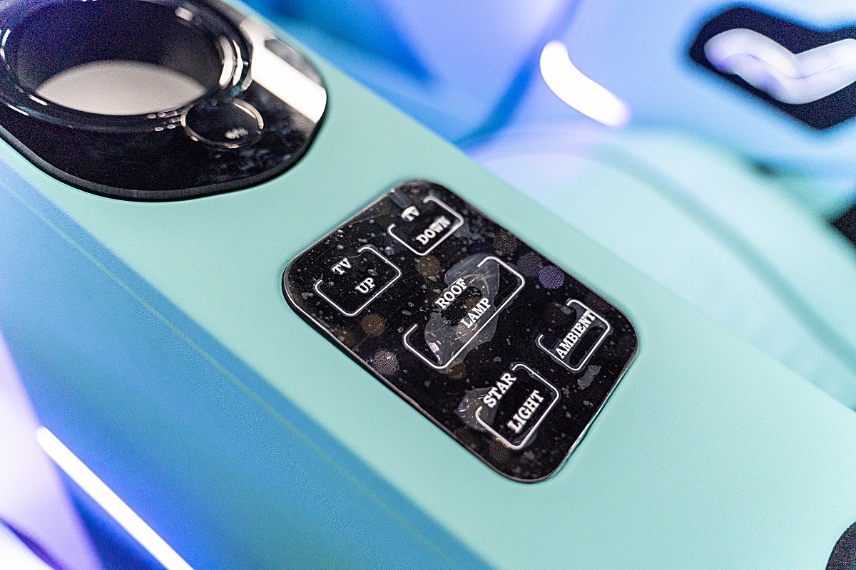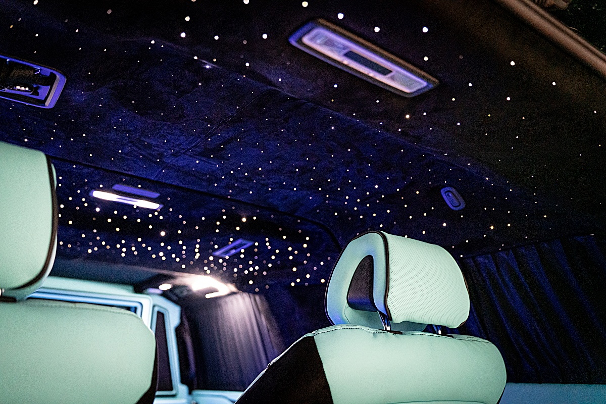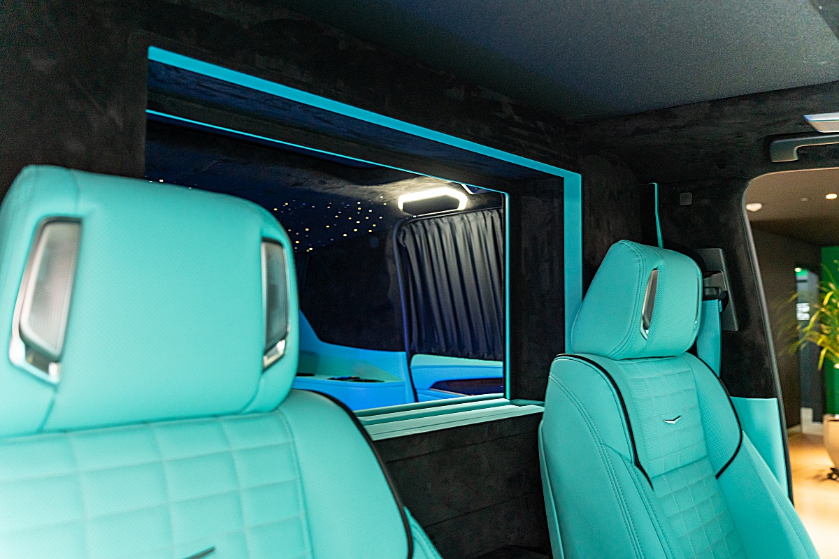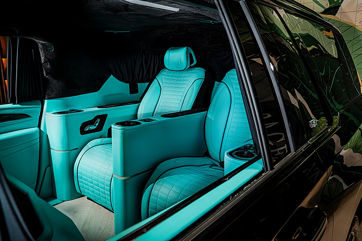 헤리티지 한유에서 제작한 캐딜락 에스컬레이드 ESV 는, 고객의 요청에 따라 실내 컬러 및 구성을 다양하게 꾸밀 수 있는데, 이번에 공개한 에스컬레이드에서는 티파니 민트 컬러에 앰비언트 무드램프, 스타라이트(Star Light) 등을 더해 실내 분위기를 우아하고 고급스럽게 꾸며놓았다.