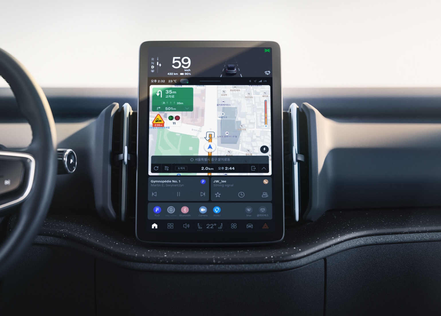 EX30에는 새로운 이동성의 경험을 위해 티맵모빌리티와 함께 개발한 5G 기반 차세대 인포테인먼트 플랫폼이 탑재된다. 직관적인 휴먼 머신 인터페이스(Human Machine Interface)와 센터 디스플레이 및 다기능 스티어링 휠 스위치 등을 통합한 개념으로, 시간이 지날수록 더욱 진화해 나가는 스마트카의 경험을 제공한다. 특히 수입 프리미엄 세그먼트 중 가장 큰 새로운 독립형 12.3인치 센터 디스플레이를 적용해 내비게이션 및 엔터테인먼트, 실내 온도 조절, 충전 및 기타 설정 등을 직관적으로 확인할 수 있으며, 96% 이상의 한국어 인식률을 자랑하는 누구 오토(NUGU AUTO)를 통해서 음성 인식만으로도 이용할 수 있다.