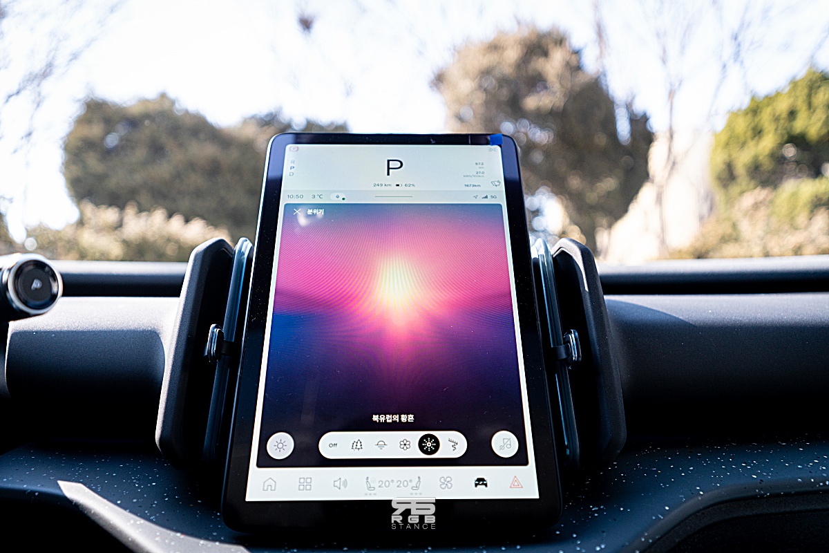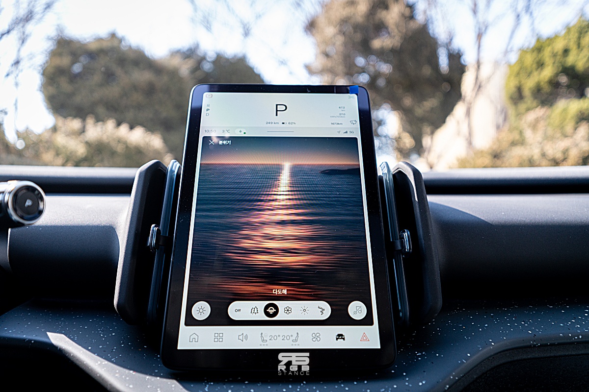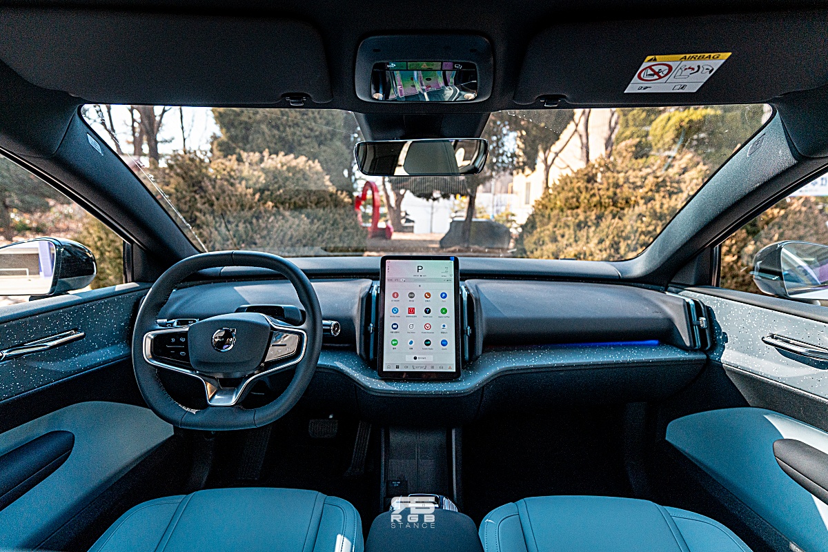 폴스타를 보는 것과 비슷한 미니멀리즘이 눈에 띄는 실내는 친환경 소재들을 사용했고, 사이드미러나 조명, 공조장치 등을 조절하는 버튼들이 모두 센터 모니터에서만 조작 가능하다.