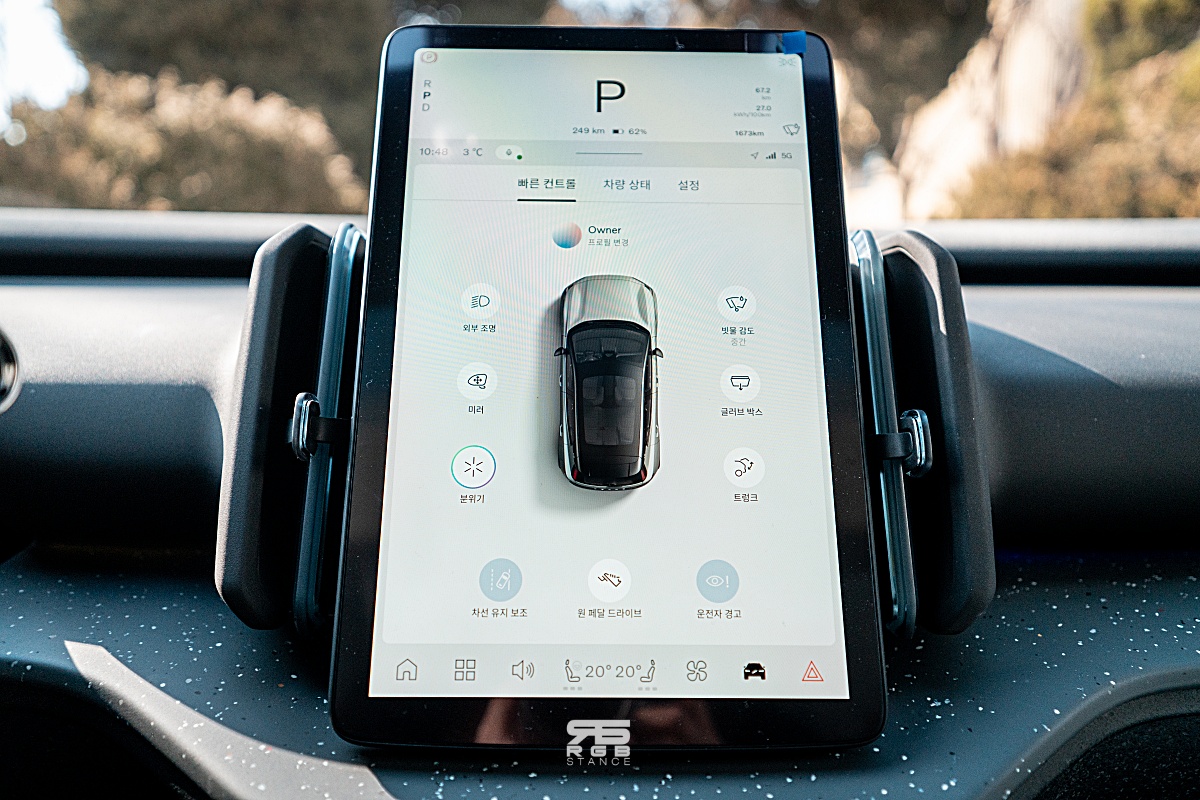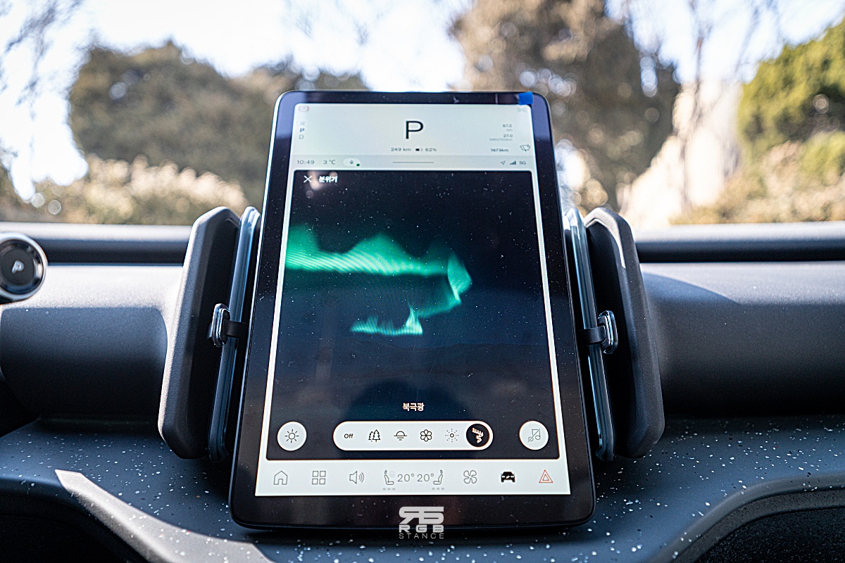 폴스타를 보는 것과 비슷한 미니멀리즘이 눈에 띄는 실내는 친환경 소재들을 사용했고, 사이드미러나 조명, 공조장치 등을 조절하는 버튼들이 모두 센터 모니터에서만 조작 가능하다.