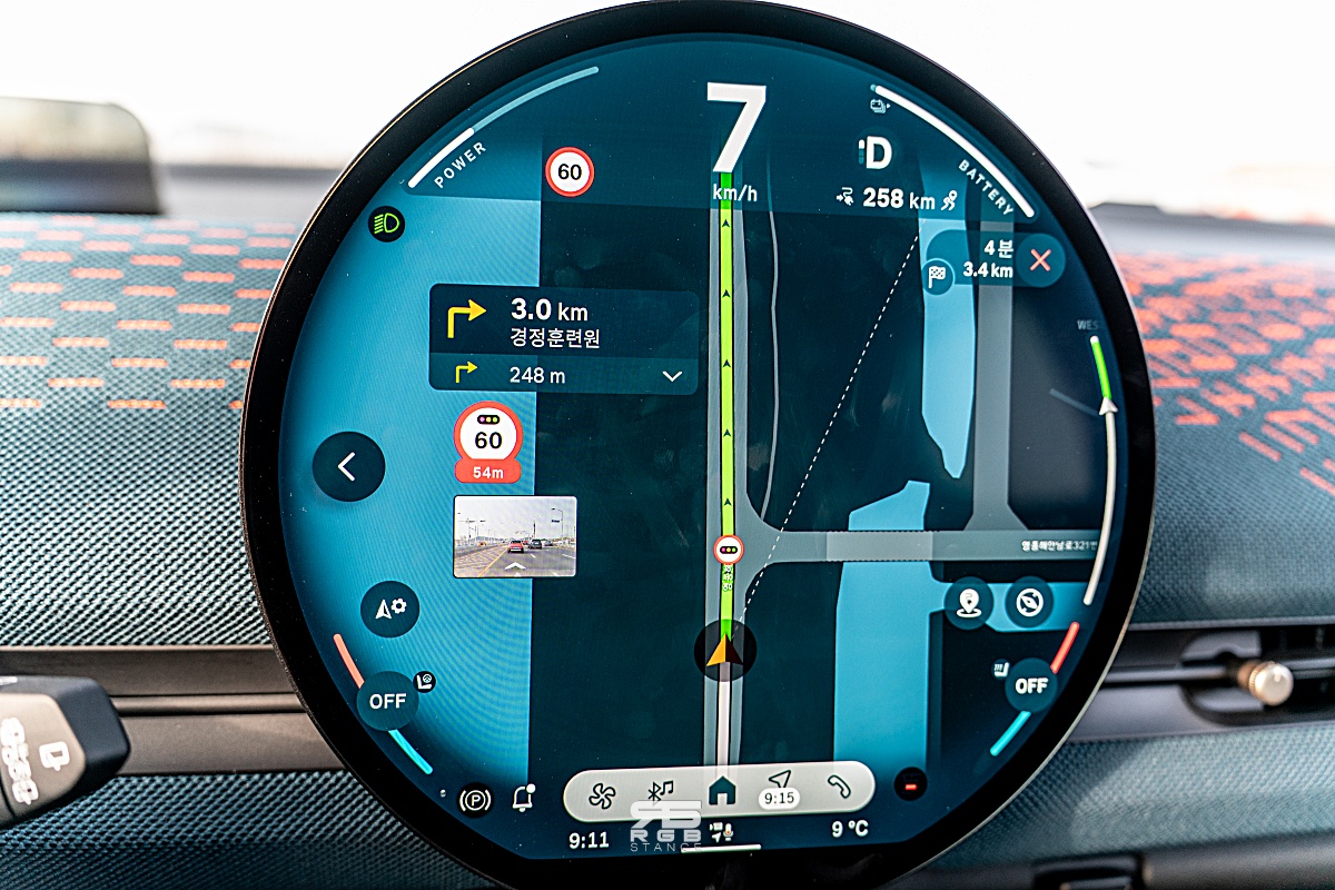 그리고, 서라운드 뷰 및 리모트 3D 뷰 등이 있고, 원형 OLED 디스플레이는 미니의 정체성을 지키면서도 하이테크한 모습을 잘 담아내고 있다. 뿐만 아니라, Tmap 을 사용하면서도 전방 화면도 함께 표시되는 등 운전자의 편의를 많이 고려한 모습들이 인상적이다.