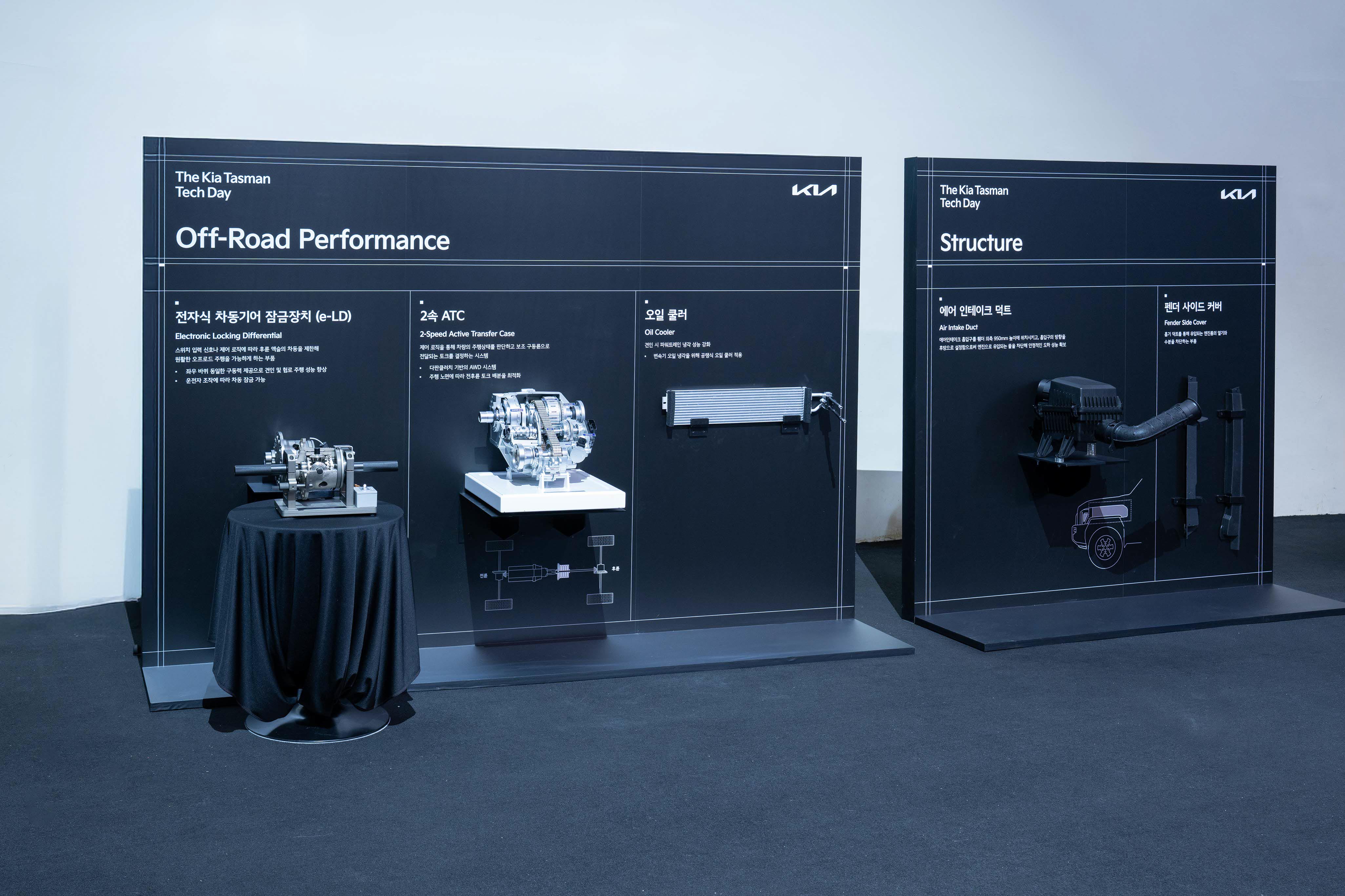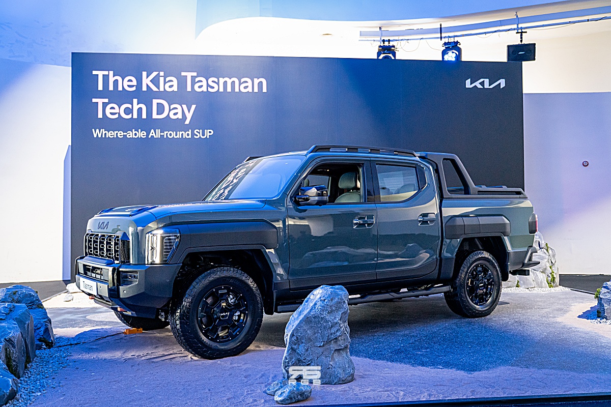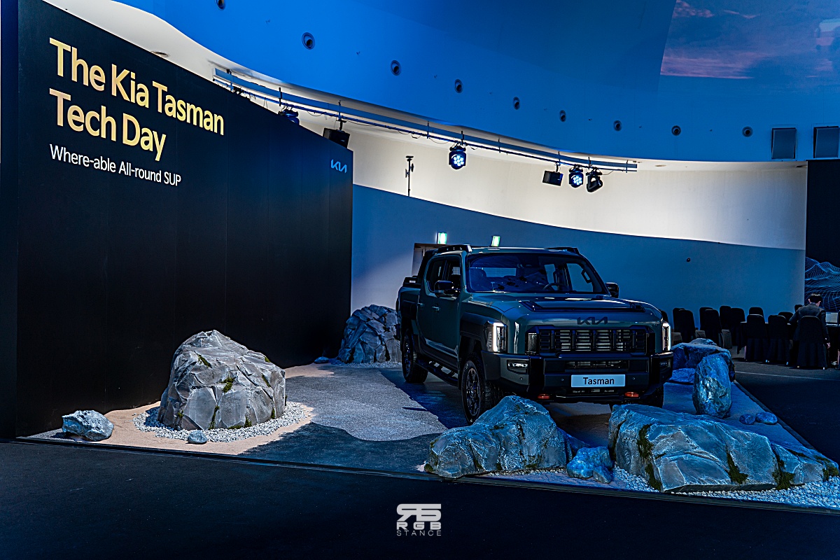 기아자동차가 처음 선보이는 정통 픽업트럭 ‘타스만(TASMAN)’ 의 시승을 앞두고, 직접 개발 담당 연구원들이 차량을 설명하는 별도 전시공간을 마련해 타스만에 대한 이해도를 높이는 ‘테크데이’ 행사를 세빛섬에서 개최했다.
