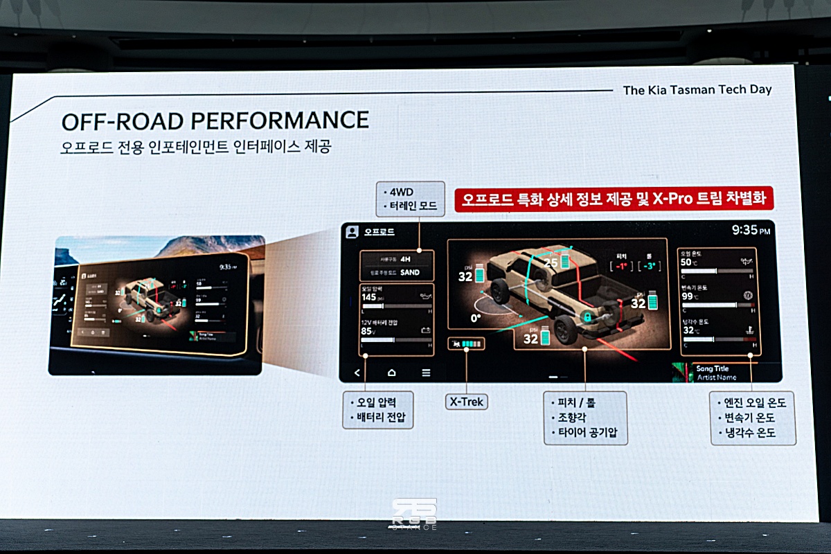 처음 선보이는 픽업트럭이기 때문에 픽업트럭이 갖춰야 할 온/오프로드 성능과 개발시 고민되었던 부분들에 대한 설명이 진행되었는데, 파워트레인과 플랫폼 및 최적의 주행 경험을 위해 노력한 부분들을 확인할 수 있었다.