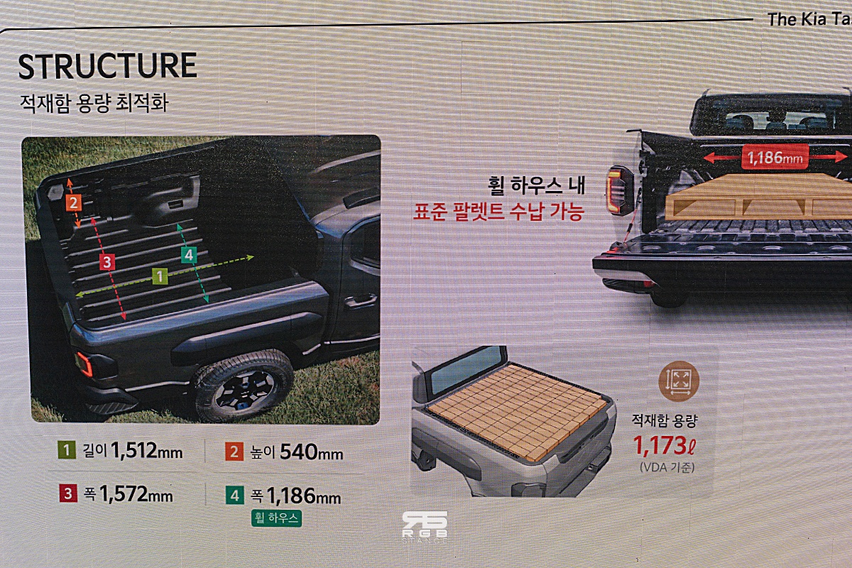 A. 적재함 용량을 늘릴 계획은 없다. 처음부터 이미 충분히 크고 최적화된 용량이라 생각하는데, 실내 공간까지 고려한 적재용량으로, 이미 미드사이즈 픽업이지만, 라지 사이즈의 적재함 용량으로 봐도 될 것 같다.