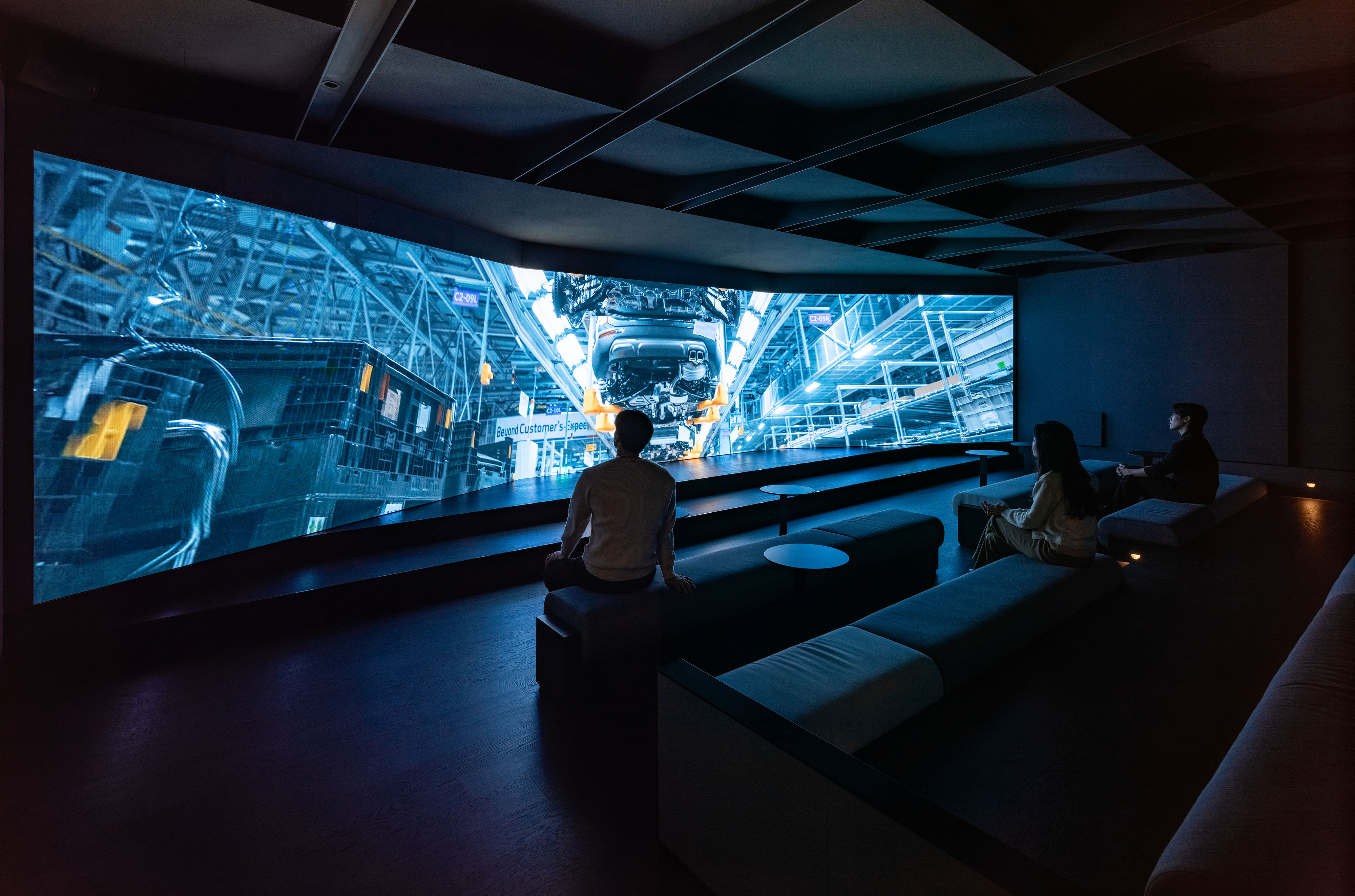 고객체험은 '브랜드관 → 생산라인 견학 → 브랜드관' 순으로 이어지며 먼저 브랜드관은 기아의 현재와 미래를 나타냄과 동시에 브랜드 비전과 기술력을 몰입해 체험할 수 있는 다양한 콘텐츠가 마련되어 있다.