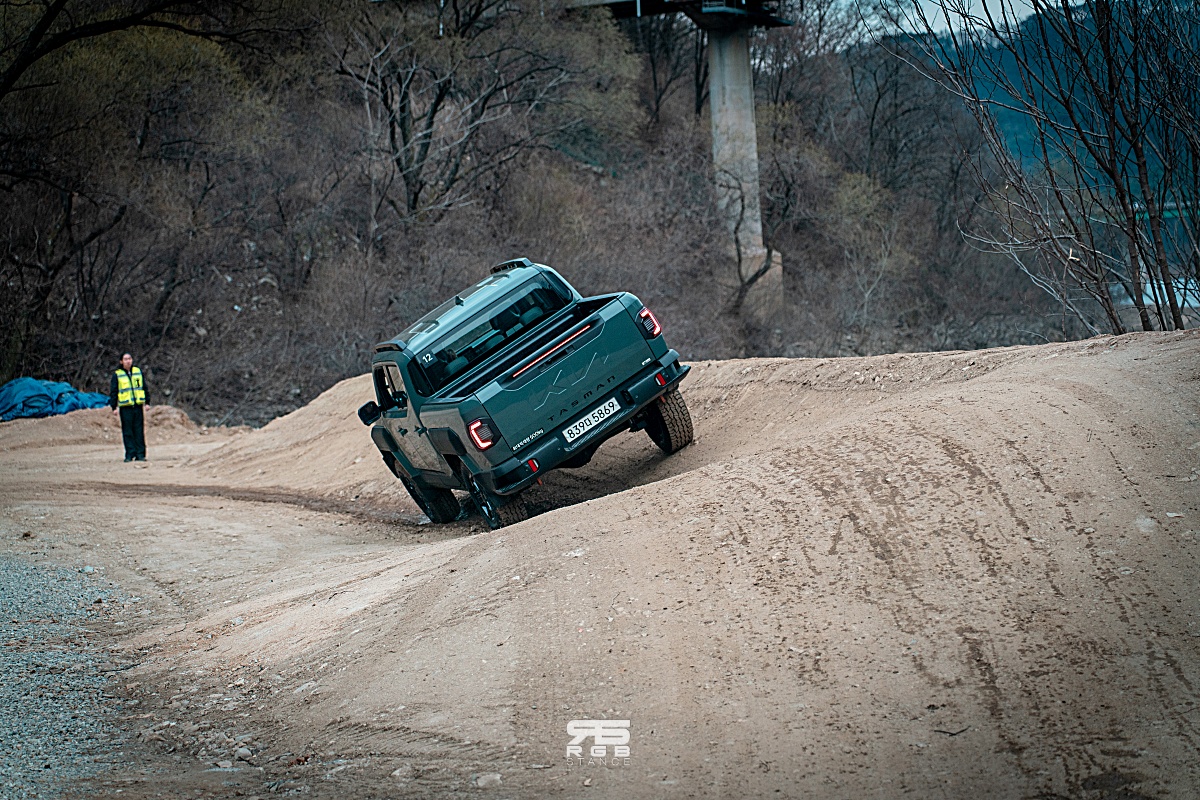 그리고, 발이 푹푹 빠지는 머드 구간에서는 단순히 진흙탕길로 차량 이동이 어려운 것 뿐 아니라, 좌우 경사각들이 커서 웬만한 차로는 주행을 하기 힘든 범피 구간에서 타스만은 정말 아무렇지도 않게 지나가 서스펜션과 차체 강성을 체험할 수 있었다. 심지어 진흙탕길에서 헛바퀴도 돌지 않는 등 뛰어난 주행 안정성을 보여 놀라웠다.