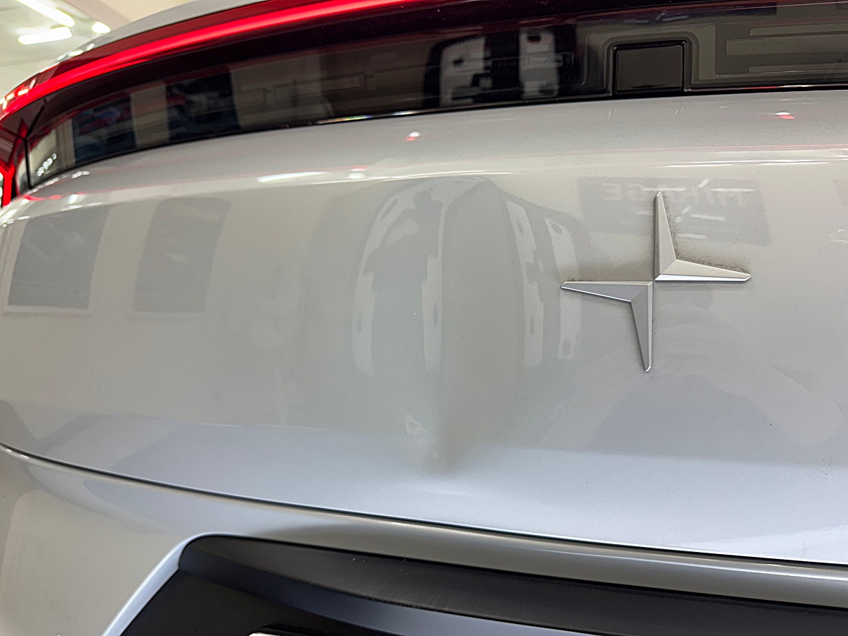 폴스타 엠블럼 옆에 세로로 길게 찍힌 부분은 주차 중 주차장의 기둥에 찍힌 사고로, 다행히도 테일램프가 깨지지 않았고, 찍힌 트렁크도 도장면이 손상된 것이 아니어서 덴트만으로도 충분히 외형복원이 가능한 수준이었다.
