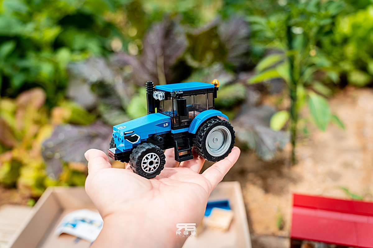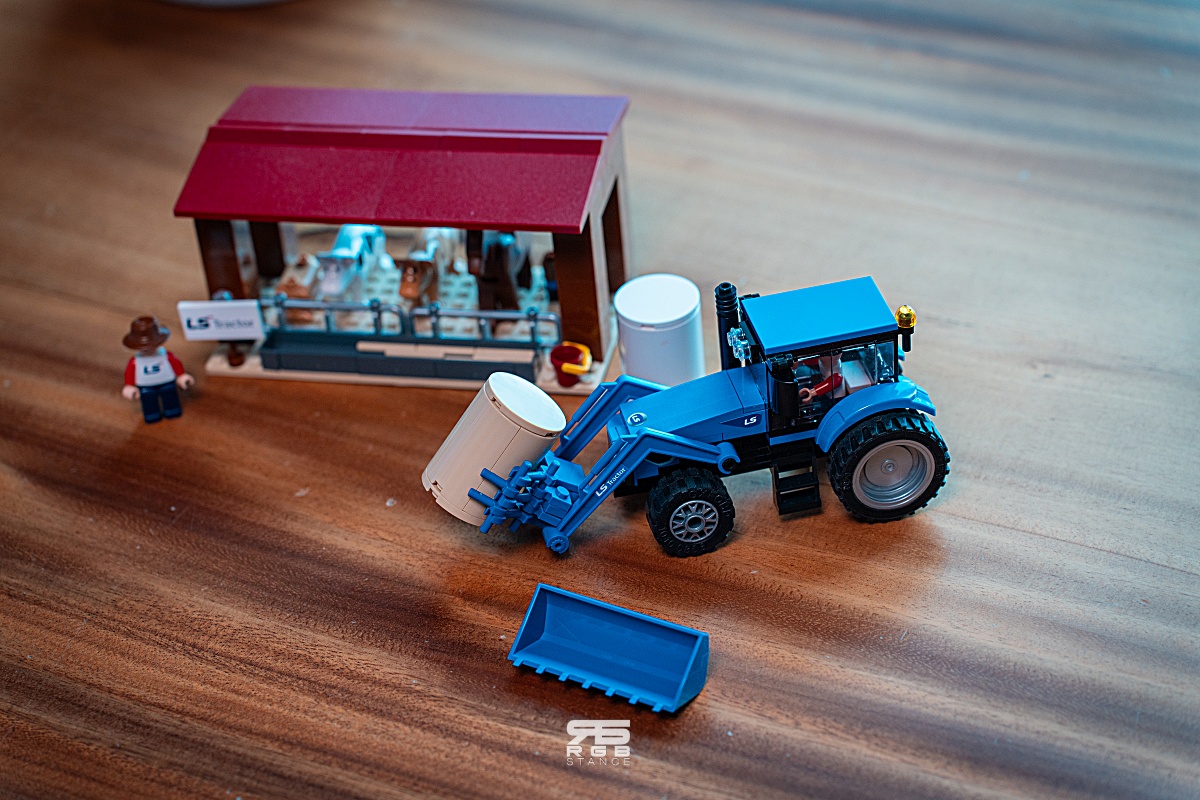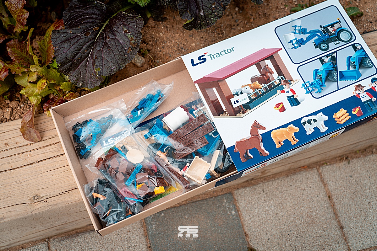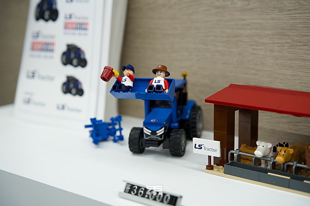 블록 하나하나는 LS 엠트론의 고품질 사출기를 사용해 정밀하면서도 견고한 모습이며, 바퀴나 집게 등 실제와 같은 섬세한 움직임까지 표현해 실제 트랙터와 비슷하게 움직이는 모습이다.