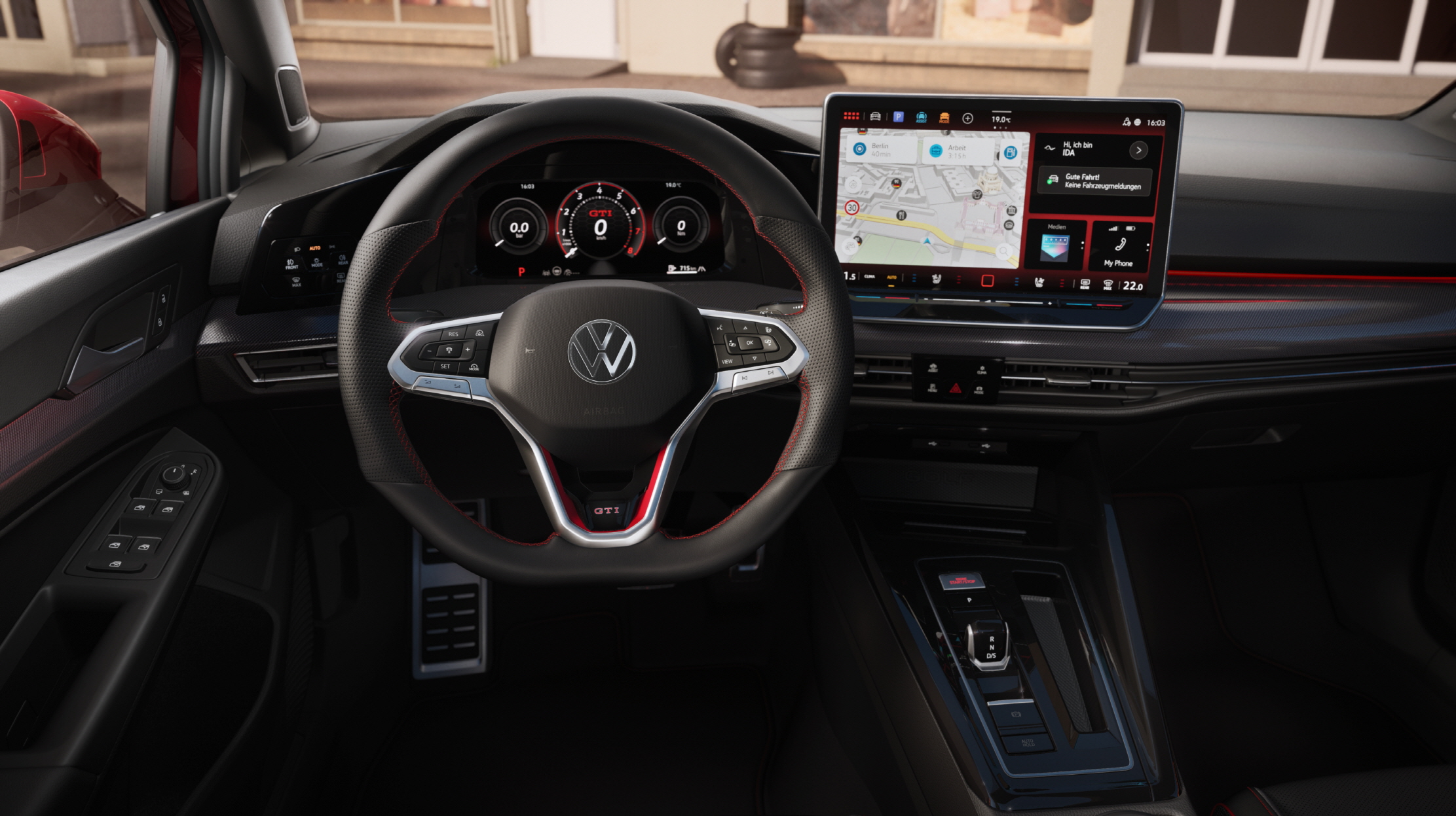폭스바겐 신형 골프 GTI에는 골프의 미래지향적이고 정제된 인테리어 레이아웃을 바탕으로 퍼포먼스 감성이 가미된 실내 디자인 및 사양이 적용된다.