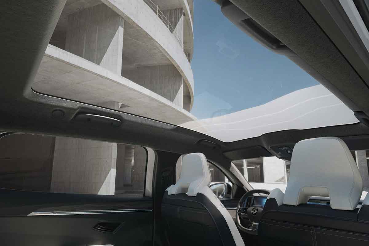 그리고, 실내 공간은 넓으면서 실용적인데, ‘생 고뱅(Saint-Gobain)’과 협업해 개발한 럭셔리 브랜드 사양의 ‘솔라베이(solarbay)® 파노라믹 선루프’를 탑재해 실내 경험의 차원을 한층 끌어올렸다. 재활용 유리를 50% 사용한 1.65m²에 달하는 넓은 면적의 글라스 루프는 전체 혹은 앞뒤 좌석 구간별 투명도를 4단계로 선택할 수 있다. 이를 통해 탑승자 개개인의 선호에 따라 빛의 유입과 프라이버시를 세밀하게 제어할 수 있다. 솔라베이 파노라믹 선루프의 자외선(UV) 차단율은 99%이고, 열에너지 투과율(TTS, Total Transmission Solar)은 약 16%이다. 덕분에 세닉 E-Tech는 열에너지 투과율이 약 40%인 일반 글라스 선루프 대비 2.5배 정도의 에너지 절감 효과를 보여준다.