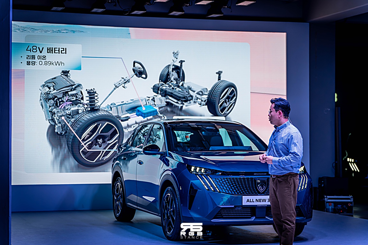 올 뉴 3008은 48V 스마트 하이브리드 시스템을 탑재, 도심 환경에서 전체 주행 시간의 약 50%를 전기 모드로 주행이 가능하다. 1.2L 퓨어테크 가솔린 엔진, 하이브리드 전용 6단 듀얼 클러치(e-DCS6), 48V 배터리로 구성된 이 시스템은 변속기 내 전기모터 통합 설계를 통해 시동·출발·저속 주행 시 전기 모드로 작동하며, 회생 제동과 가속 보조 기능으로 높은 연료 효율과 정숙성을 제공한다. 여기에 정밀한 스티어링 반응과 고속 안정성까지 더해져 푸조 특유의 경쾌하고 민첩한 주행 감성을 완성했다.