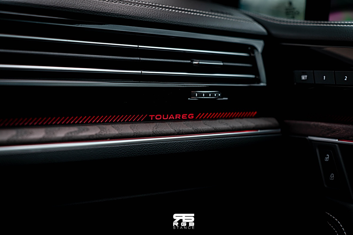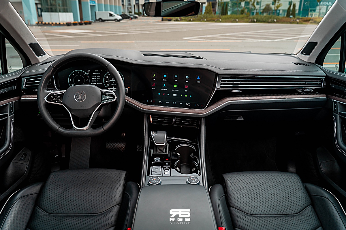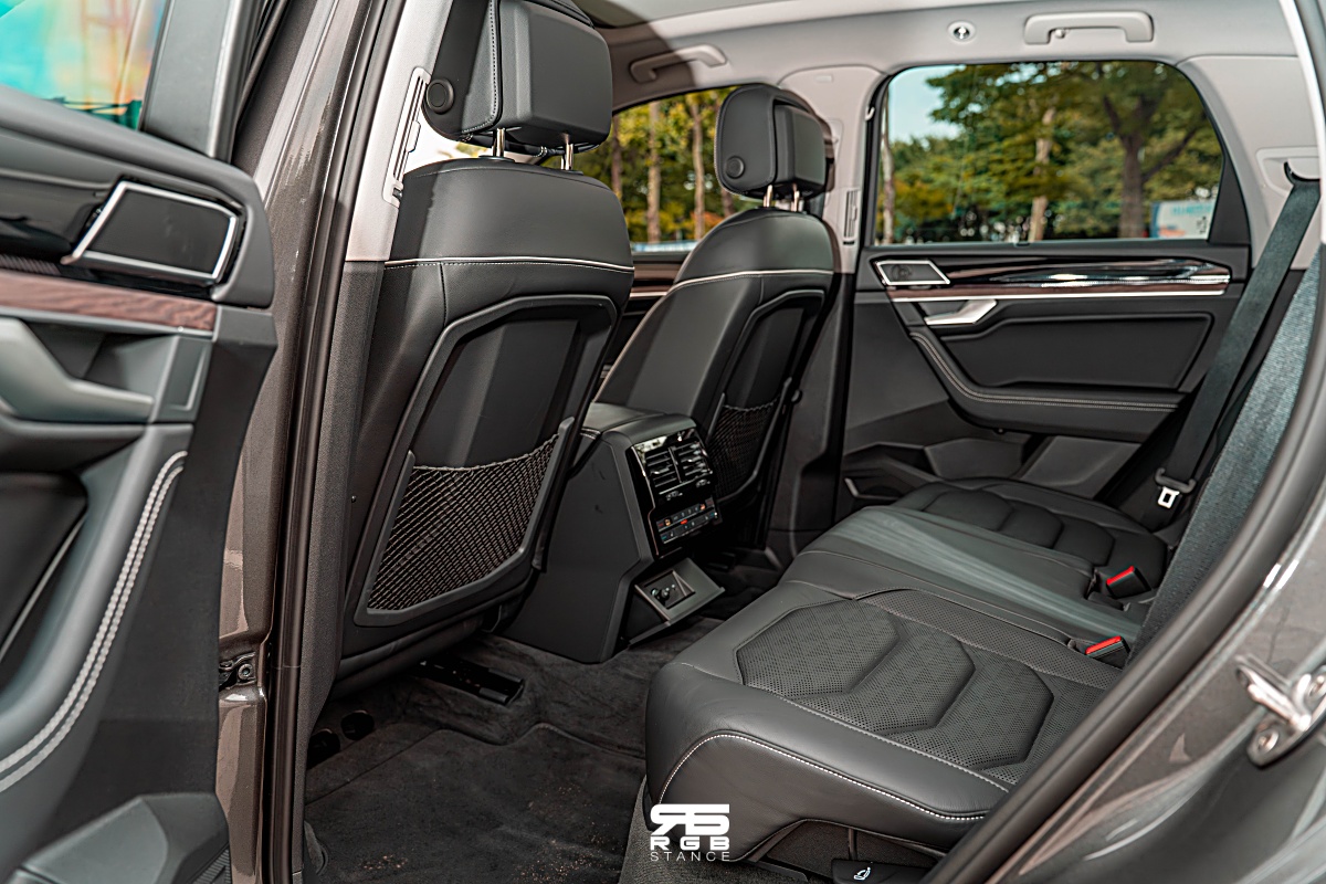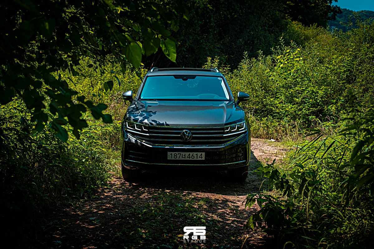 전장 4,880mm, 전고 1,684mm, 전폭 1,985mm 에 휠베이스 2,899mm 로 꽤 큰 덩치를 자랑하는 투아렉은 볼드하다는 말이 참 잘 어울린다. 화려하지는 않지만, 강한 선으로 완성된 폭스바겐 투아렉의 라인들은 존재감을 부각시키기에 충분하다. 프론트 헤드램프는 매트릭스 헤드램프로 주간에는 깔끔한 3 Eyes 디자인의 DRL 이 투아렉의 존재감을 깨우며, 38,000개 이상의 인터랙티브 LED 로 야간도 걱정 없다.