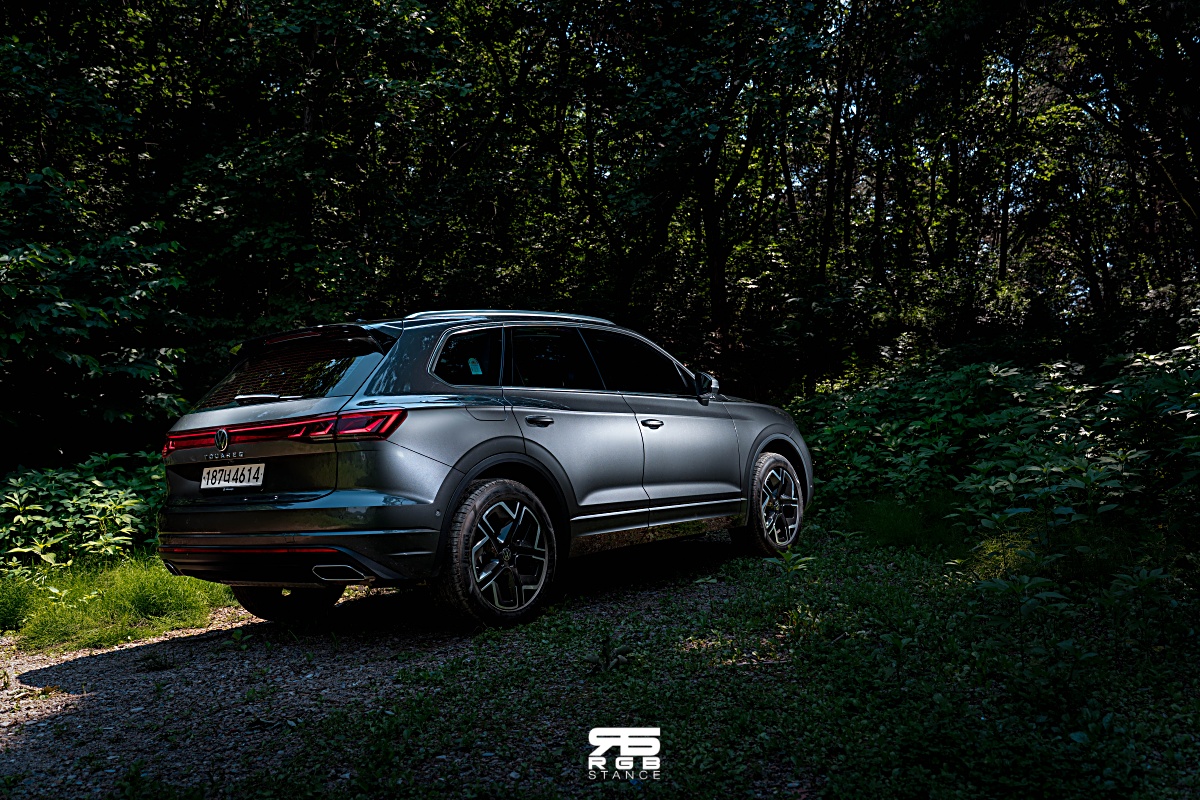 전장 4,880mm, 전고 1,684mm, 전폭 1,985mm 에 휠베이스 2,899mm 로 꽤 큰 덩치를 자랑하는 투아렉은 볼드하다는 말이 참 잘 어울린다. 화려하지는 않지만, 강한 선으로 완성된 폭스바겐 투아렉의 라인들은 존재감을 부각시키기에 충분하다. 프론트 헤드램프는 매트릭스 헤드램프로 주간에는 깔끔한 3 Eyes 디자인의 DRL 이 투아렉의 존재감을 깨우며, 총 38,000개 이상의 인터랙티브 LED 로 야간도 걱정 없다.
