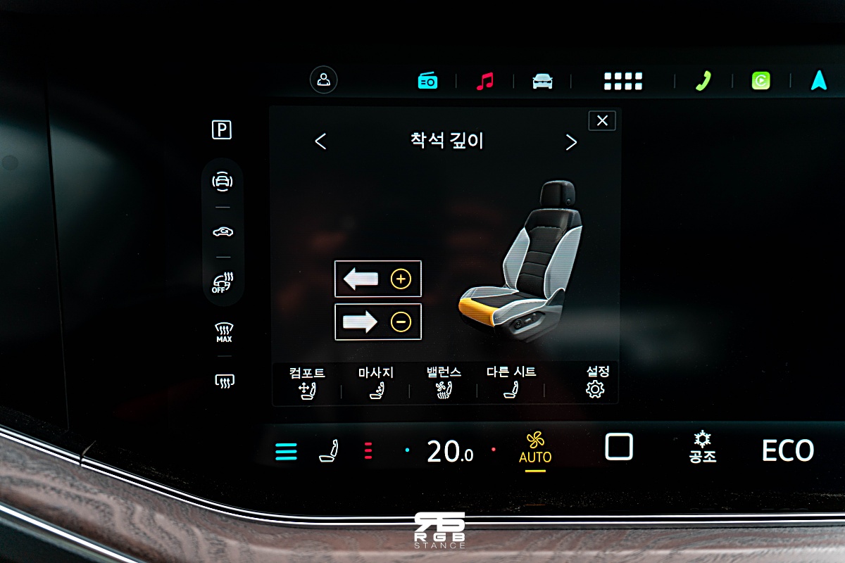 15인치 인포 디스플레이는 애플 카플레이나 안드로이드 오토 기능이 제공되며, 조작성이 간편하다. 뿐만 아니라, 에르고 컴포트 시트는 통풍/열선기능 외에도 마사지 기능이 추가되어 장시간 운전시 몸의 피로도를 줄여주는 등 실내 편의사양들은 충분하다.