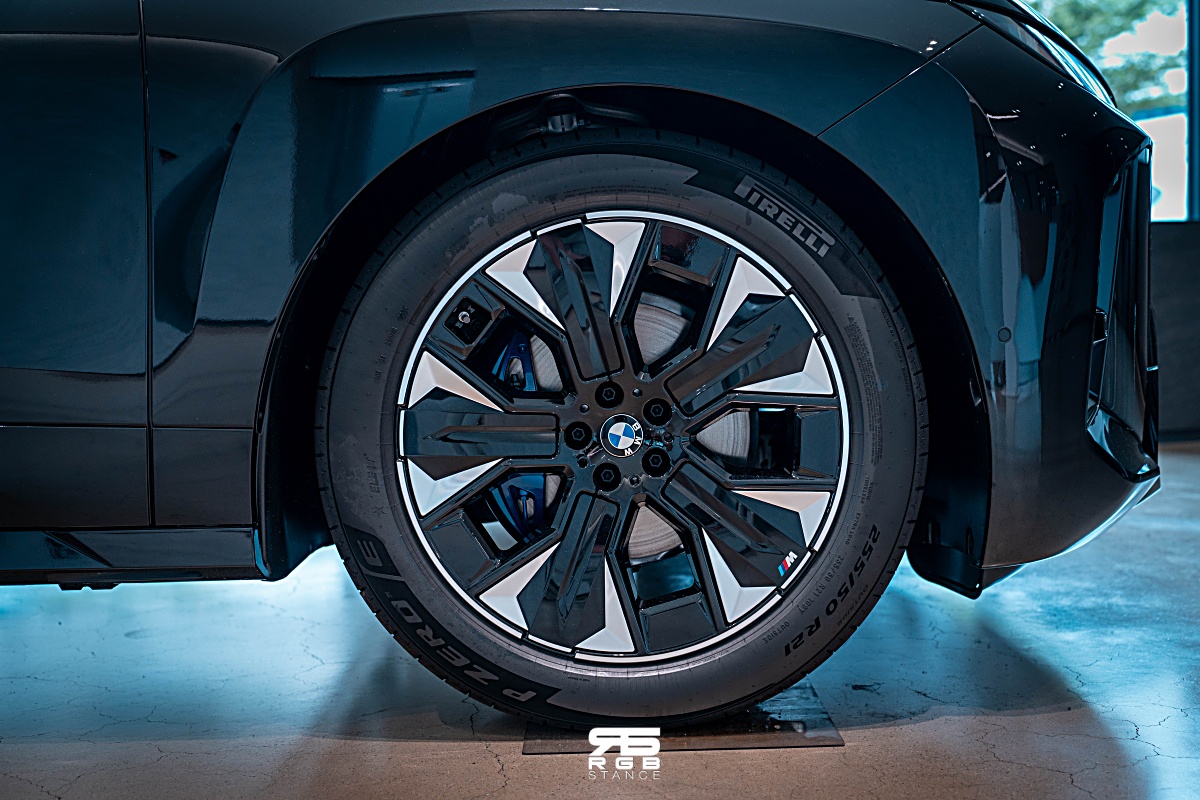 또한, M 디자인이 적용된 만큼, 입체감 있는 프론트 범퍼의 에어 인테이크와 리어 디퓨저도 강렬한 존재감을 보여주는데, 전시되어 있는 기본 모델 iX xDrive45 의 경우엔, 키드니 그릴이 ‘은색’ 으로 적용되며, 21인치 투톤 휠과 함께 파란색 M 스포츠 브레이크 캘리퍼가 적용된다.