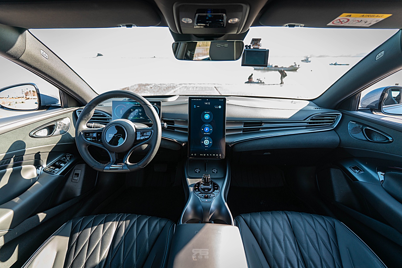 실내로 들어오면 넓은 파노라믹 글래스루프가 개방감을 보여주고, 수평형 레이아웃의 대시보드가 실내를 넓게 보여준다. 특이한 점은 송풍구쪽을 제어할 수 있는 버튼들이 없는데, 이건 따로 센터모니터에서 제어할 수 있게 되어 있다. 그리고 몸을 잘 잡아주는 버킷시트는 주행시에도 상당히 편안한 착좌감을 보여준다. 중국차에서 이정도의 퀄리티를 볼 줄이야? 하는 생각이 들게 되고, 센터콘솔과 도어의 앰비언트 라인트는 감성적인 면도 보여준다.