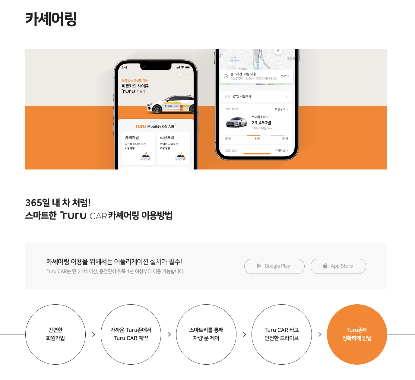 A. 투루카 어플을 이용해 예약하면 되는데, 강릉역 근처 투루존에서 차종과 렌트할 날짜를 선택하고 예약하면 된다.