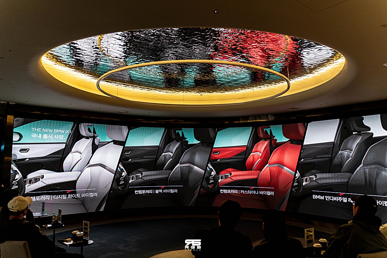프리뷰 행사에 전시되어 있는 차량은 M 스포츠 모델로, 오션 웨이브 블루 컬러에 화이트 컬러의 인테리어를 보이는데, M 스포츠 프로와의 차이점이라면 3D 키드니 쉐도우라인, M 스포츠 브레이크 레드 캘리퍼, 미러 커버 및 디퓨저의 블랙 하이그로스가 적용된다는 것인데, 전시된 차량은 그런 포인트가 보이지 않았다. M 스포츠 모델만으로도 충분히 멋질 수 있다는 자신감이라고 보여진다.