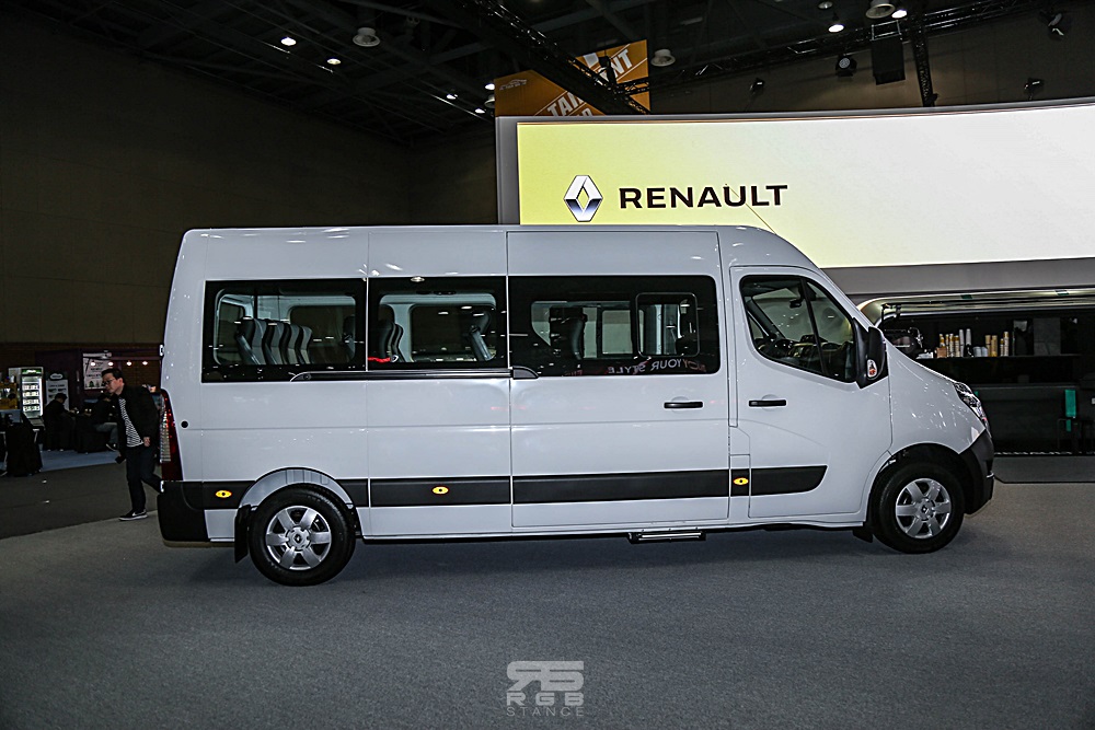 마스터 버스는 2.3리터 트윈터보 디젤엔진이 들어간 전륜구동으로 사계절 언제라도 '익스텐디드 그립 컨트롤(Extended Grip Control)' 기능으로 안전한 주행을 가능하게 해주며, 차선이탈 경보 시스템과 경사로 밀림방지 기능이 기본 탑재되어 있어서 안전에 많은 신경을 쓴 모델이다. 특히, 문이 열리면 자동으로 전동식 발판이 작동되는 만큼, 시장에서의 인기가 높을 것으로 기대되며, 올 6월중에 이 마스터 버스가 출시될 것이라고 한다.