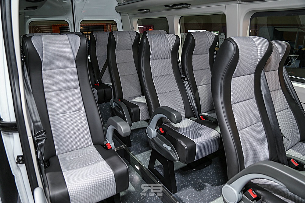 XM3 인스파이어 뿐 아니라, 마스터 버스도 드디어 공개되었다. 13인승과 15인승 버스로 전 좌석에 접이식 좌석이 아닌, 넓고 편안한 고정식 좌석을 기본 제공하고 있으며, 전 좌석에 3점식 안전벨트를 적용하여 보다 높은 수준의 안전성을 자랑하고 있으며, 15인승 모델의 경우에 넓은 레그룸 공간을 보여 장거리 이동에도 큰 불편함은 없어보인다.