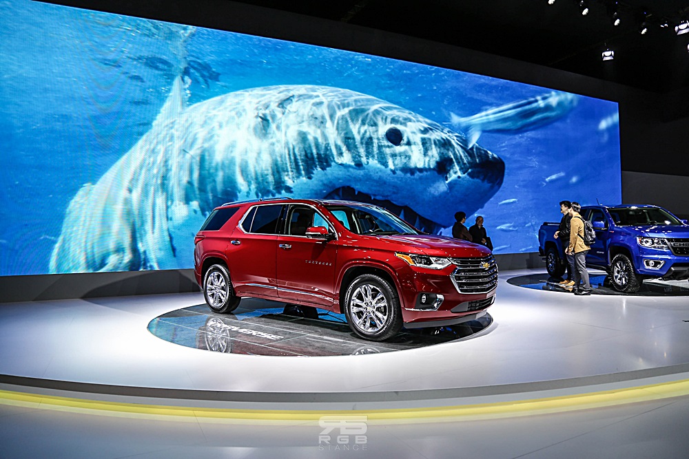 2019 서울모터쇼에서 쉐보레는 정통 아메리칸 SUV 및 픽업트럭 라인업을 선보이고, 드디어 대형 SUV 트래버스(Traverse) 와 중형 픽업트럭 콜로라도(Colorado) 및 풀사이즈 SUV 타호(Tahoe) 를 전시했다. 트래버스와 콜로라도는 쉐보레 100년이 넘는 역사가 담긴 대표적인 모델로, 아메리칸 라이프 스타일을 구현할 수 있도록 다양한 편의사양과 기술력을 선보이고 있다.