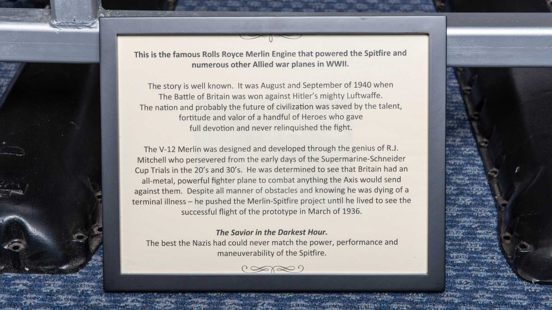꽤 많은 수의 엔진이 만들어졌었지만, 지금까지 온전히 보전되어 있는 엔진은 많지 않다고 해서 이 롤스 로이스 Merlin V12 엔진의 가치는 상당히 높은 편이라고 한다.