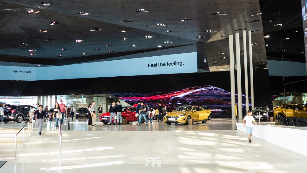 현대모터스튜디오 고양점에서는 수소전지차 넥소(NEXO) 를 비롯해서 신형 쏘나타(DN8) 까지 다양한 현대자동차가 전시되어 있다.