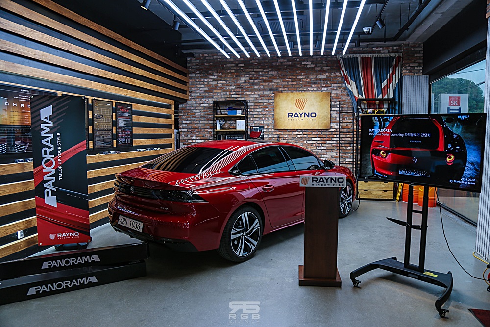 실제로 푸조 508의 뒷유리에 시공된 레이노 파노라마 시리즈를 보면, 뒷유리의 열선과 도트를 찾아볼 수 없으며, 유리와의 일체감이 더욱 뛰어나 마치 컨셉트카를 보는 듯한 느낌이었다.