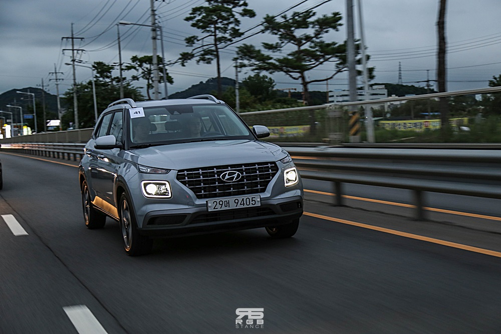 경쾌함 그 자체였다. 혼라이프 SUV 베뉴(VENUE) 에는 차세대 파워트레인 스마트스트림 G1.6 과 IVT가 탑재되었는데, G1.6 은 듀얼 인젝터를 통해 연료 분사 시기와 분사 비율을 최적화한 듀얼포트 연료 분사 시스템(DPFI, Dual Port Fuel Injection) 을 적용하여 연소 효율을 향상시켰고, IVT 변속기는 주행상태에 따라 다양한 변속 모드를 구현하였는데, 123마력, 15.7kg.m 이라는 토크의 스펙을 보면 별로 가속감이 대단할 것 같지는 않지만, 1.2톤을 살짝 넘기는 가벼운 무게의 베뉴를 매우 가볍게 움직이기에 충분했다. 밟으면 밟는대로 톡톡 치고 나가는 베뉴의 가속성능은 꽤 만족스러웠다. 한편, 5,000rpm 을 넘기는 시점에서는 조금 거친 사운드가 들리긴 했지만, 100km/h 가 넘는 속도에서도 상당한 정숙성을 보여주기도 했다.