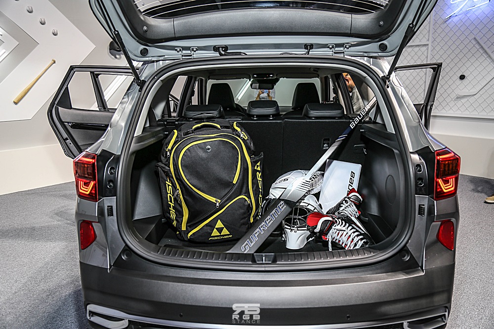 '절제된 젊은 고급스러움' 을 충분히 구현해낸 셀토스는 498리터의 트렁크 공간도 매력적인데, 2단 러기지 보드를 적용하여 적재 편의성을 높였고, 골프백 3개와 보스턴백 3개를 넣을 수 있고, 디럭스 유모차도 적재가 가능할 정도로 여유있는 트렁크 용량을 자랑하고 있다.