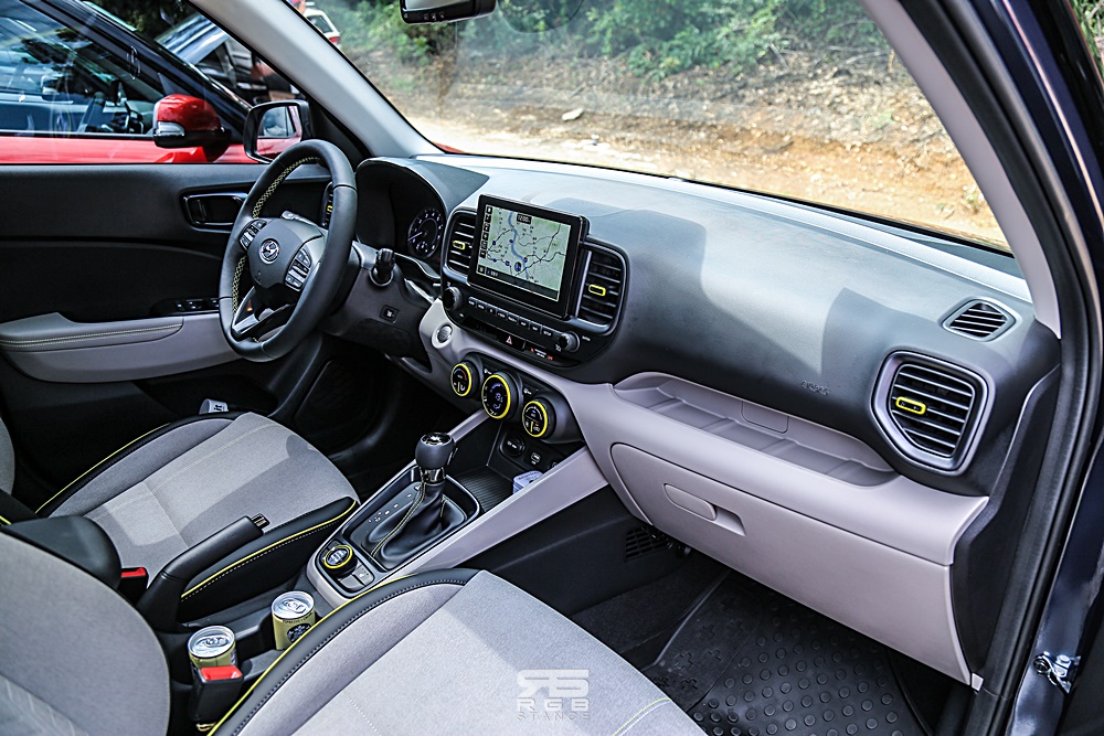 시승했던 모델은 FLUX 인테리어 컬러포인트가 적용되어 있었는데, 애시드 옐로우 컬러의 스티치가 적용된 스티어링휠과 에어컨 및 에어벤트의 포인트는 시각적으로 큰 매력을 주고 있다. 옵션으로도 무선충전 기능이 있는데, 시승차에는 적용되어 있지 않았다는 점이 조금은 아쉬웠다. 하지만, 베뉴를 구입한다면, 무선충전 기능은 필수적으로 선택하길 추천한다.