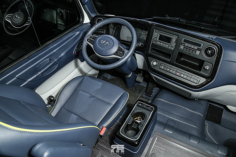 실내는 휴대폰 무선충전장치를 비롯해, 상용차 전용 내비게이션과 장시간 차량에서 생활하는 고객을 위해 '확장형 슬리핑 베드' 도 적용하였다. 이 외에도 블루링크를 통해 원격시동, 무시동 히터, 도난감지, 추적, 원격 시동차단, 긴급 구난상태 전송이 가능한 '안전보안' 서비스도 제공한다.