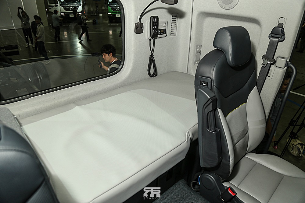 또한, 일부 대형 트럭에만 적용되던 전방 충돌방지 보조(FCA), 차로이탈경고(LDW), 후방주차보조(R-PAS) 등의 최첨단 안전 사양을 선택할 수 있으며, 공기압 경고장치 뿐 아니라, 타이어의 온도가 110도 이상으로 올라갈 경우에도 경고 알람을 띄워주고 있어 운전자의 안전운전을 도와준다.