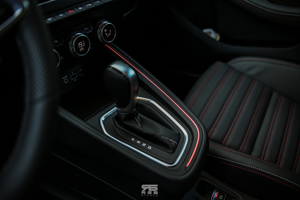 실내는 레드 포인트 컬러와 스포츠 시트, 카본파이버 스타일의 인서트 장식이 인상적이며, 9.3인치 인포테인먼트 패널은 상당히 빠른 처리속도를 보여주고 있으며, 르노 전기차 조에(ZOE) 에서처럼 깔끔한 인터페이스를 보여주고 있다. 불필요한 버튼들은 인포테인먼트 패널에 집어놓고, 에어컨, 열선, 등의 버튼들을 바로바로 사용할 수 있도록 피아노타입의 물리버튼으로 패널 아래에 위치시켜놓았다. 참으로 실용적이면서도, 깔끔한 구성을 보여주고 있다. 그리고, 편의를 위한 무선충전시스템과 2개의 USB 포트가 있다. 실내 공간은 꽤 괜찮은 편이지만, 2열 레그룸은 아주 넓다고는 하지 못한다. 하지만, 상당히 실용적인 구성을 갖추고 있다.
