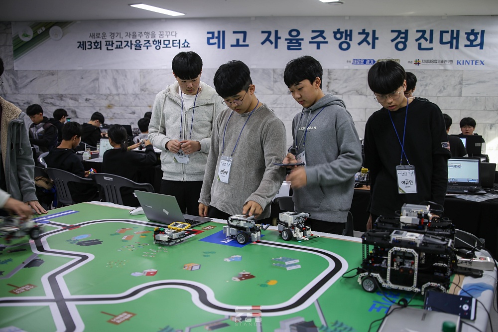 판교자율주행모터쇼에서는 자율주행과 관련한 컨퍼런스도 열리고, 자울주행 인식기술 경진대회 등도 열렸는데, 눈에 띄는 점은 대학생들의 자동차 융합기술 경진대회와 초중고등학생들의 레고 자율주행차 경진대회와 고등학생 자작자율주행 경진대회였다.
