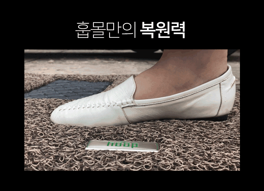 그리고, 20mm 두께의 촘촘한 코일이 푹신푹신한 쿠션감과 텐션을 주고 있어서 발 뒷꿈치가 아파지지 않으며, 먼지가 날리지도 않게 해주어 실내의 쾌적함을 유지시켜준다. 그 뿐만이 아니다. 그냥 물로 간편하게 청소하면 되며, 말릴 필요 없이 에어건으로 물기를 털어내기만 하면 되기 때문에 관리하기에도 편하다.