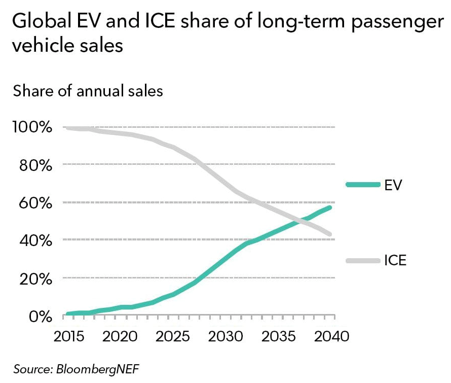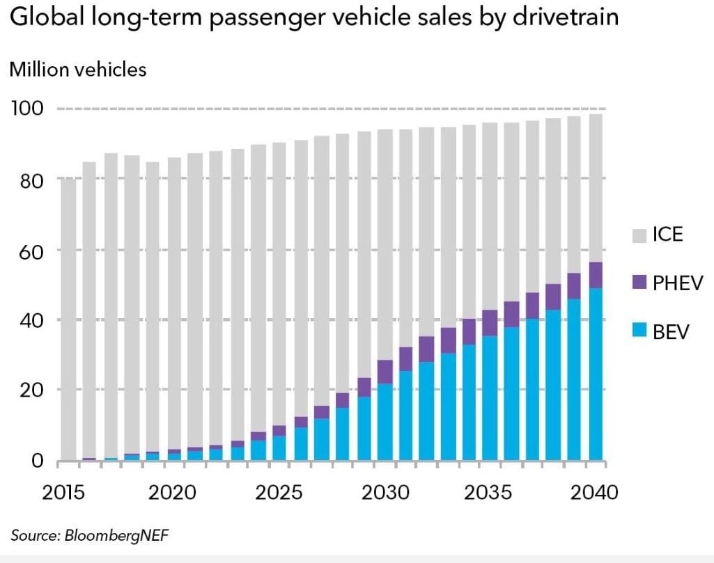 2010년도만 하더라도 수천대밖에 판매되지 않았던 전기차는 2018년도가 되면서 200만대 이상 판매되기 시작했다. 블룸버그는 NEF 2019 전기차 전망이라는 보고서를 통해 2025년에는 1,000만대를 돌파하고, 2030년에는 2,800만대, 2040년에는 5,600만대의 전기차가 판매될 것이라고 추정했다. 즉, 전기차 비중은 2040년에는 신차 판매량의 54%, 전세계 자동차의 33% 에 달하게 될 것이며, 승용차는 물론, 상용차 시장에서도 전기자동차가 대세가 될 것으로 보고 있다. 보고서에 따르면, 내연기관 차량의 판매량을 앞질러 본격적인 전기자동차 시장이 도래할 것인데, 상업적으로 성공할 방법을 찾지 못했다는 다이슨 회장의 전기차 사업 포기의 이유에 대해서 고개를 갸웃거리게 된다. 특히, 다이슨 회장은 전기차 시장이 상대적으로 수익성이 낮은 사업이라고 말했는데, 과연 그럴까? 그렇다면 전기차 시장이 매년 28% 정도 성장하는 이유는 무엇일까?