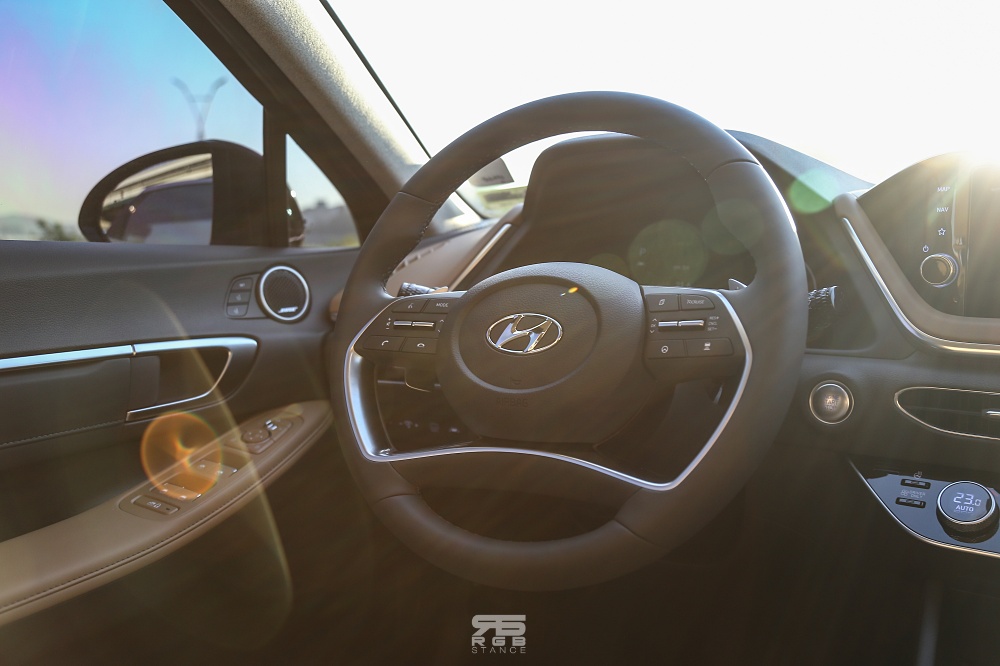 여기에 쏘나타다운 승차감이 상당히 매력적인데, 정숙한 실내만큼이나 요철을 넘을 때에도 부드러운 서스펜션의 세팅은 꽤 편하다. 쏘나타답다라는 느낌이 들 만큼, 부드러운 승차감이 너무나도 마음에 든다. 하지만, 패밀리세단, 전륜구동 차량이라는 점에서 핸들링의 고급감은 떨어지는 것은 사실이나, 편의사양을 비롯한 실용적인 부분에서는 예전에 알던 현대자동차가 아니라, 한단계 진보된 모습이라는 점에서 만족스럽다고 할 수 있다. 게다가 아주 넓은 뒷좌석도 아주 만족스럽다.