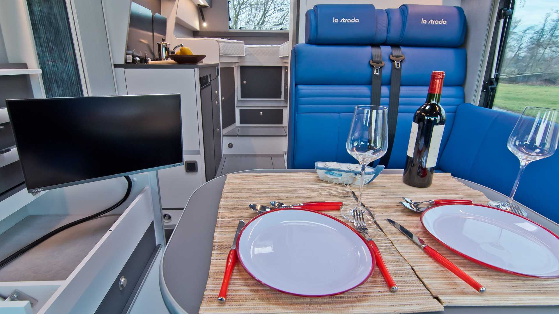후륜구동 혹은 사륜구동 모델로 선택할 수 있는 La Strada Nova EB 는 캠핑카에 별도로 자전거를 싣고 다닐 수 있는 공간이 있으며, 운전석과 조수석을 캠핑할 때에는 뒤로 돌릴 수 있는 버킷시트로 보다 넓은 공간을 연출할 수 있다.