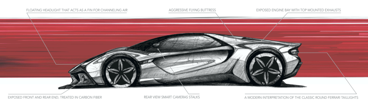 스탤론 컨셉트카를 디자인한 머레이 샤프는 총 12번의 디자인을 했었으며, 라페라리를 이을 후속모델이 이런 하이퍼카가 되지 않을까 하는 상상으로 시작되었다. 그런데, 이 랜더링이 실제로 만들어져도 전혀 문제가 없을 듯한 페라리의 라인과 컬러, 등이 너무나도 매력적이다.